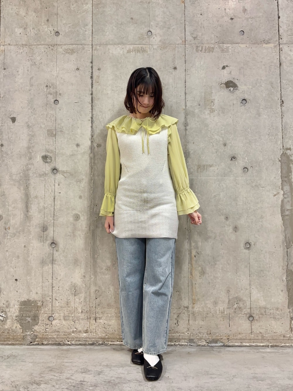 今回はシルエットが綺麗なベストアイテムやストレートデニムと合わせることで、広がって見えてしまうフリルもより映えて見えます🫶🏻