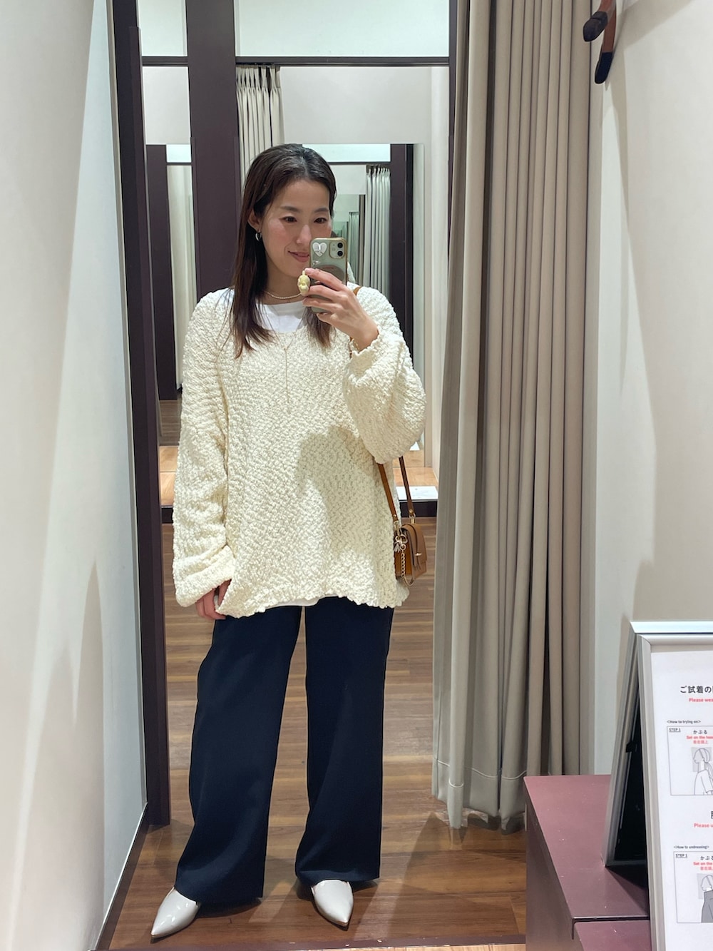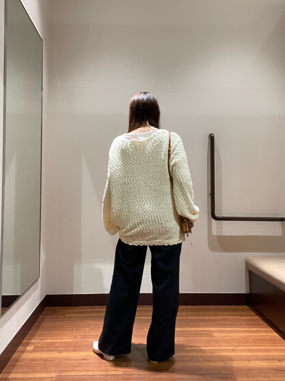 パンツは154㎝のわたしが履いても丈感がちょうど良く低身長の方でもヒールが苦手な方にもオススメしたい商品です👖✨