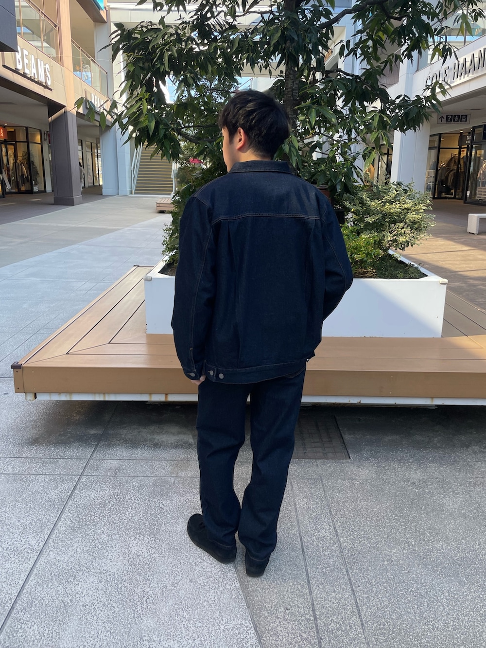 こちらの商品は、ドストレートのデニムパンツになります。写真のようにセットアップでよりアメカジ感を出すことも可能ですし、太くなく、細くなく、よりストイックな雰囲気を出し、脚長効果も出せます。短丈アウターを合わせるのがおすすめです。