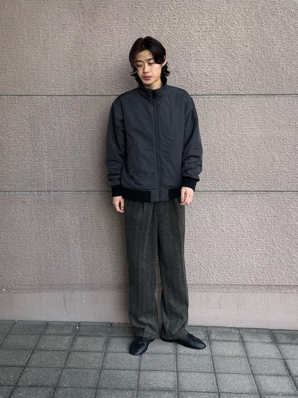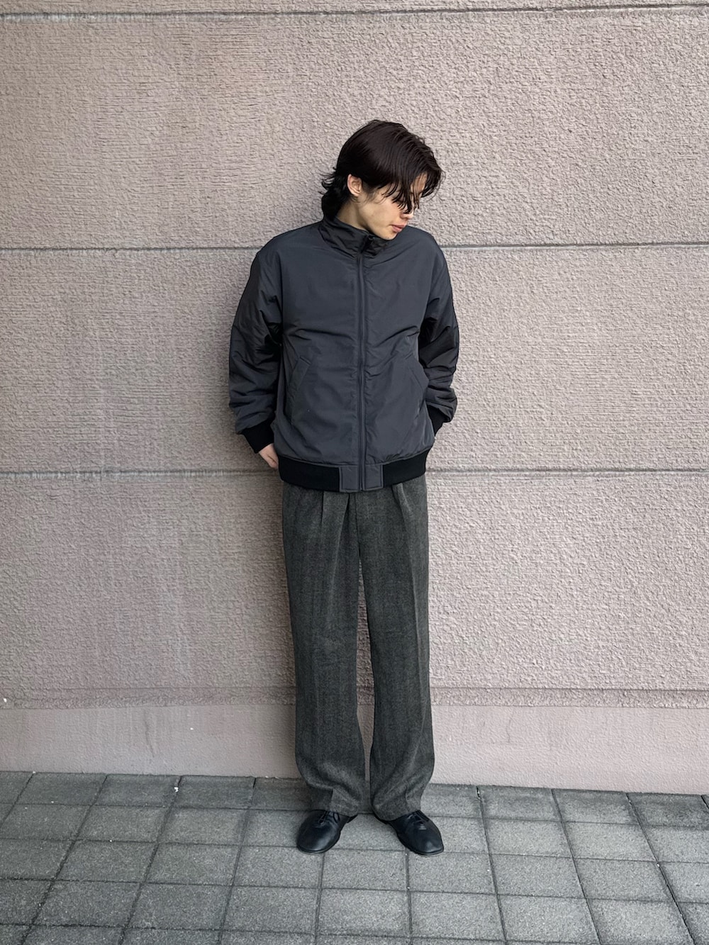 今回のコーディネートはROSSOの中綿ブルゾンにヘリンボンスラックスを合わせたコーデです!ブルゾンはシンプルなデザインで使いやすく、暖かく軽いので少しのお出かけなのでも、楽に羽織っていただけます!スラックスはシルエットがとても良くウエストを紐で調節できるので、カッコよく楽に履いていただけます!