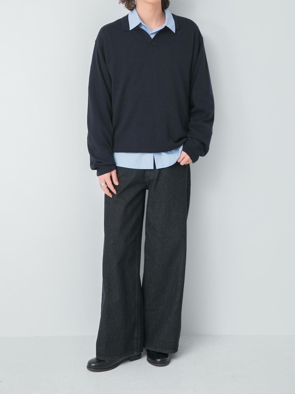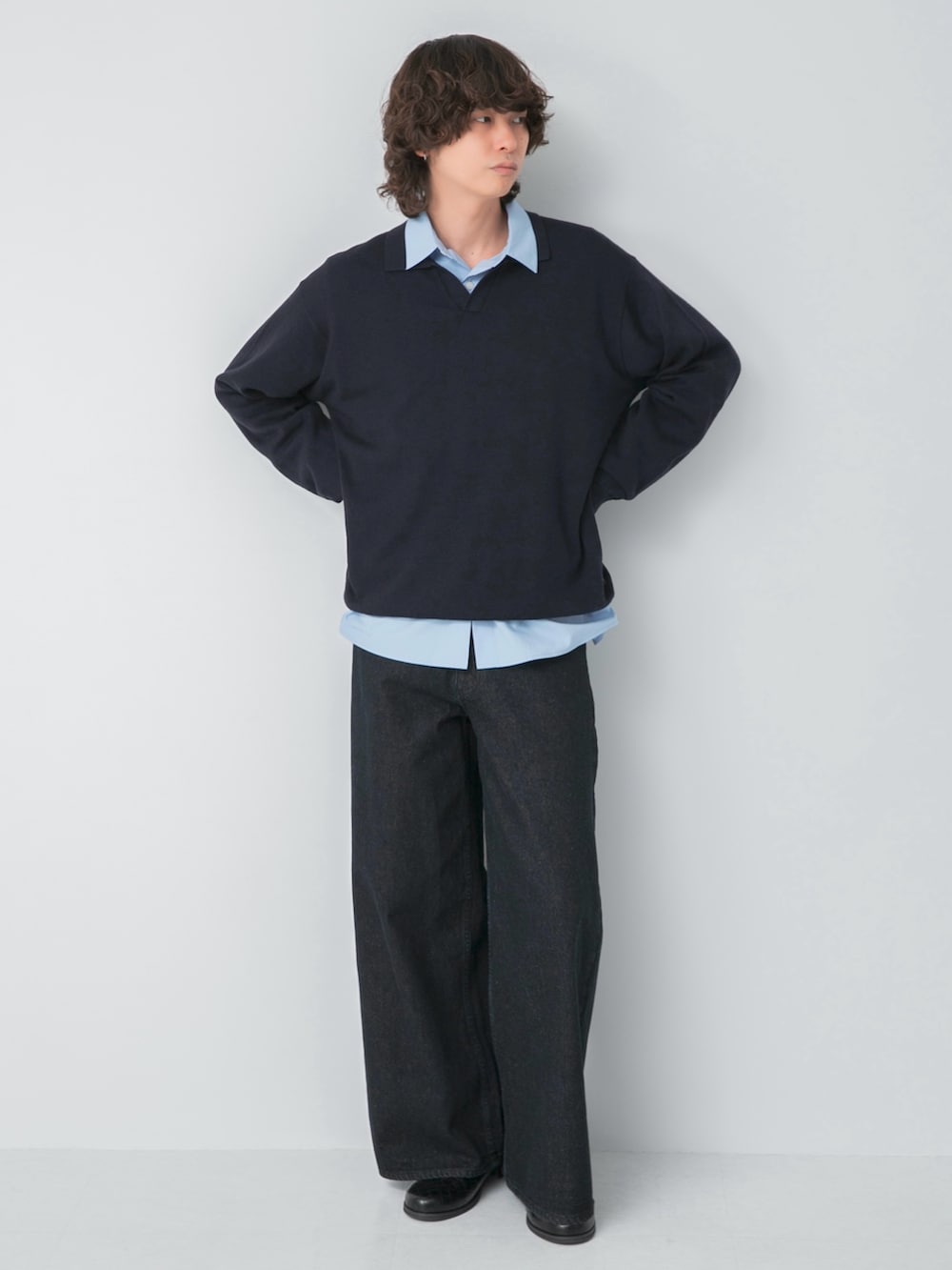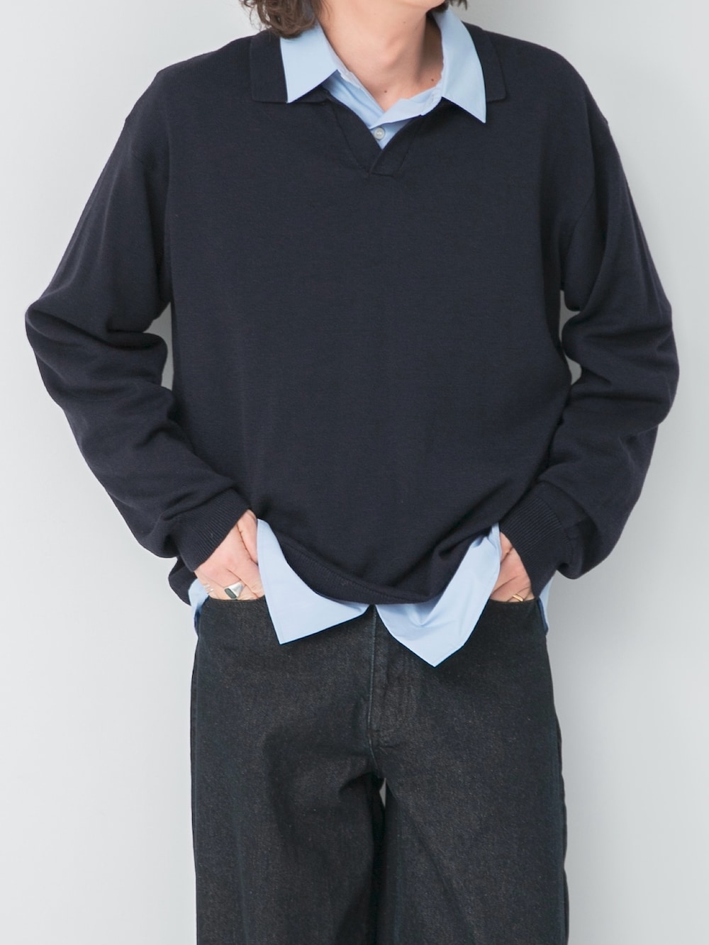 SENSE OF PLACE『洗濯可』スキッパーロングスリーブニット- 着用カラー: