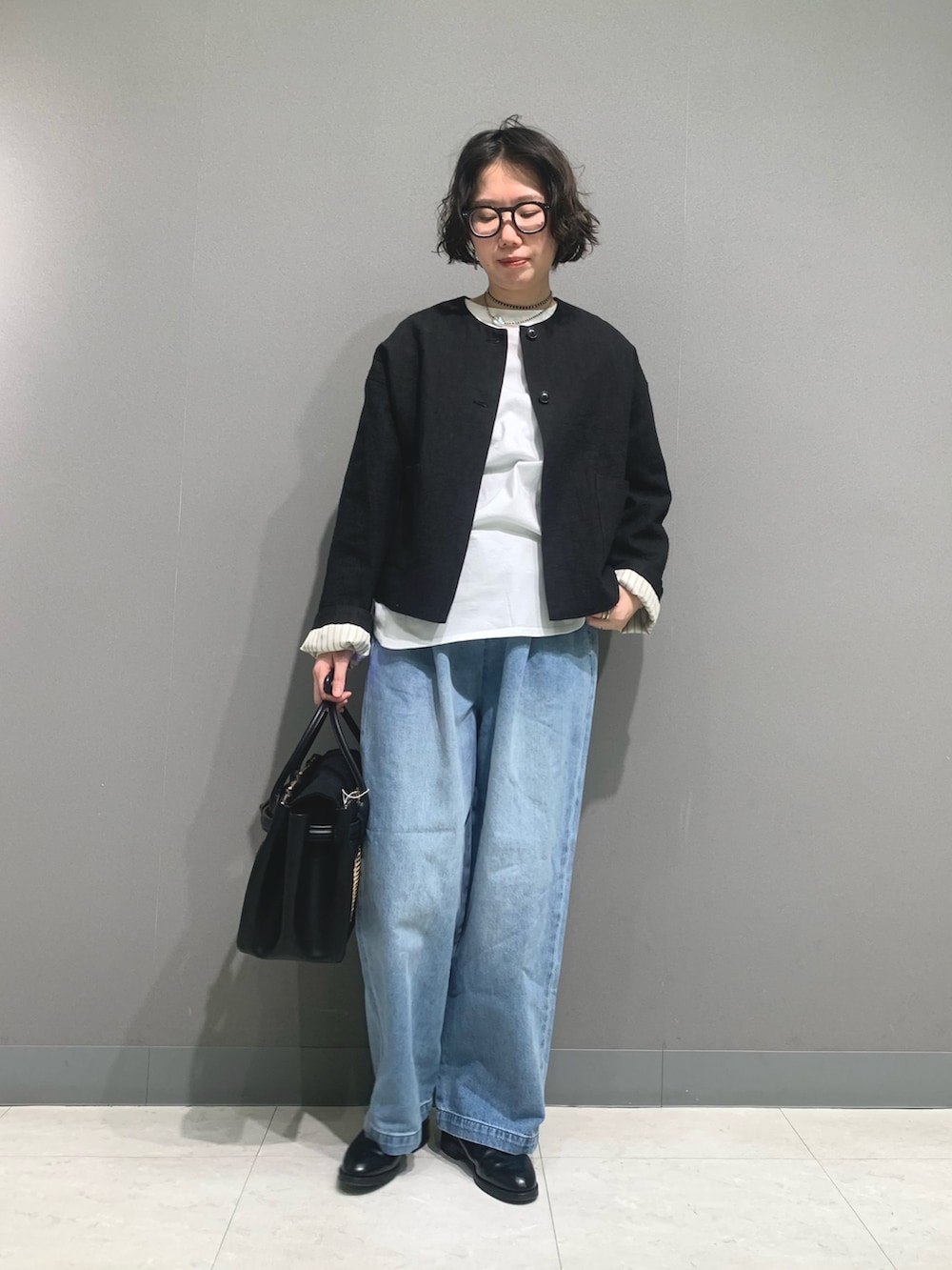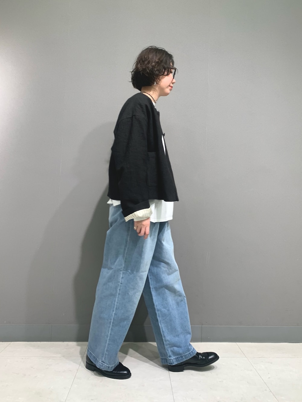 定番のフェードデニム。カジュアルなトップスとはもちろん、ジャケットやブラウスなど綺麗めなアイテムとも相性がいいです。