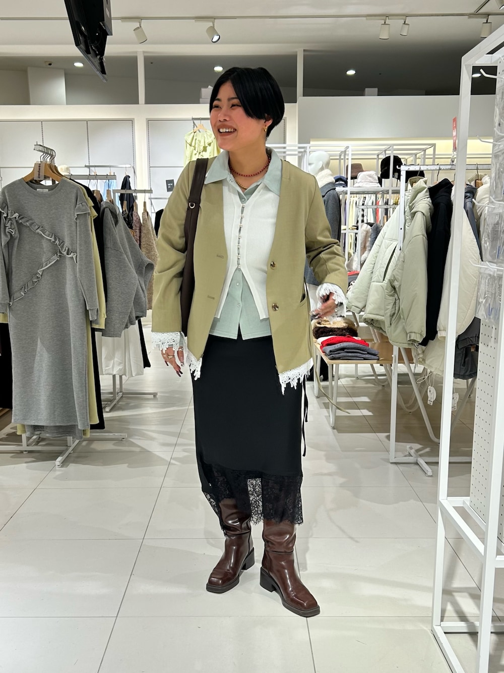 ピンクのシャツも差し色で入れて、春らしく🌸