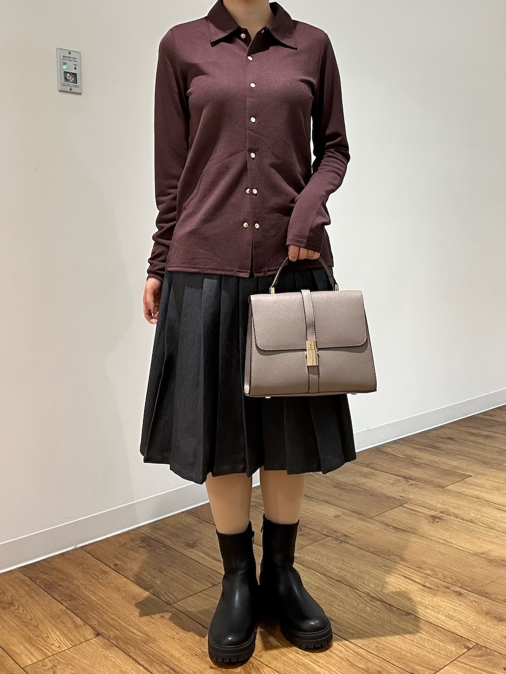 休日コーデとしてミディ丈のスカート合わせでモダンっぽいコーディネートもおすすめです^^