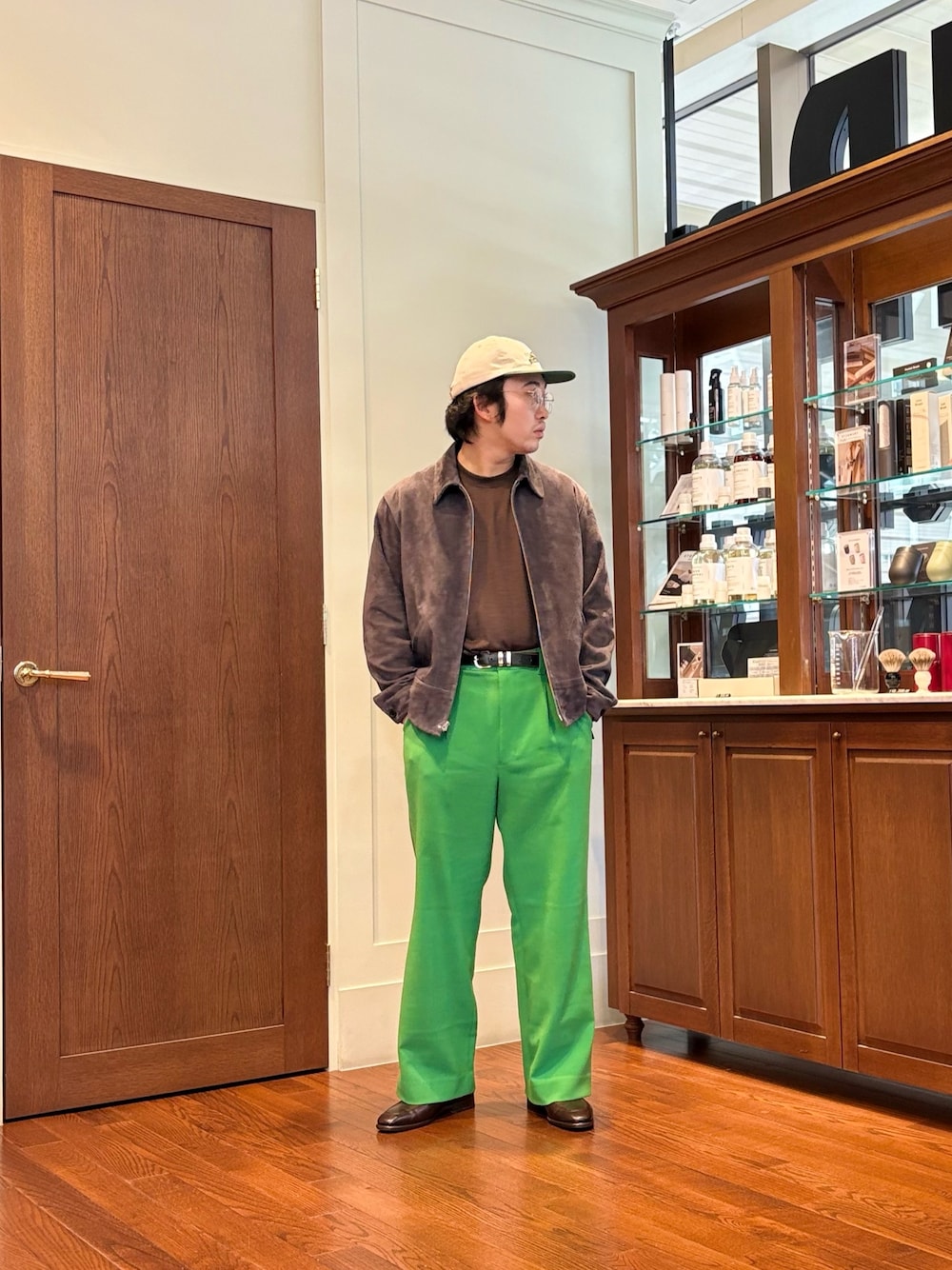 パンツはwillowpants。イーレ店全員大好きなブランド。粗野な雰囲気なので綺麗にジャケットやシャツで合わせるのが好み。