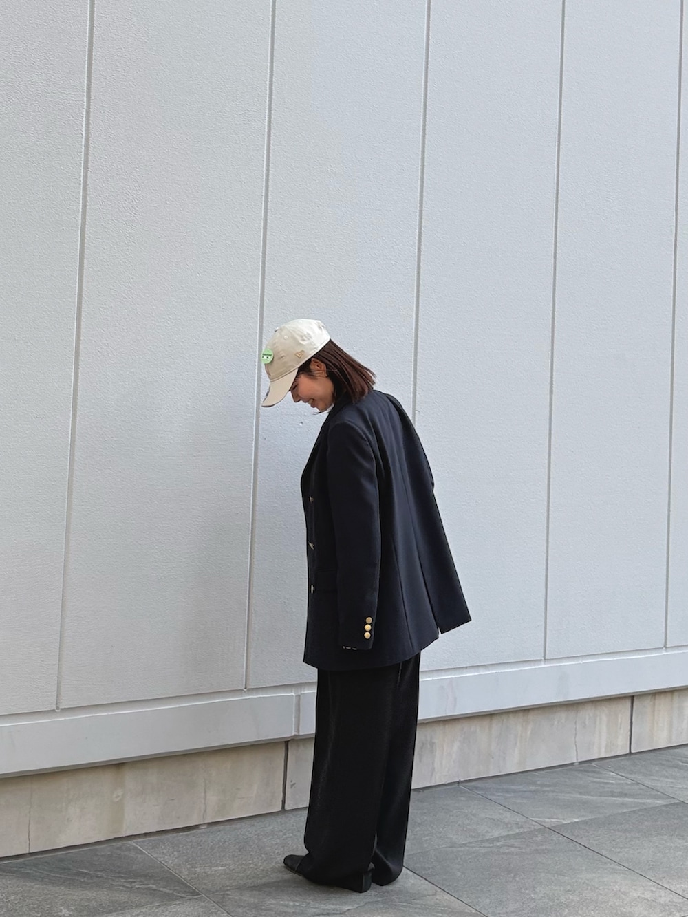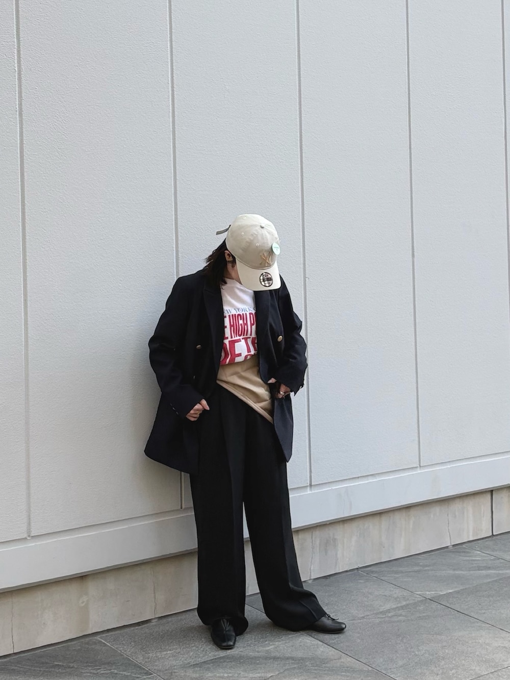 ジャケットにキャップでカチッとしすぎず着崩すのもオススメです!