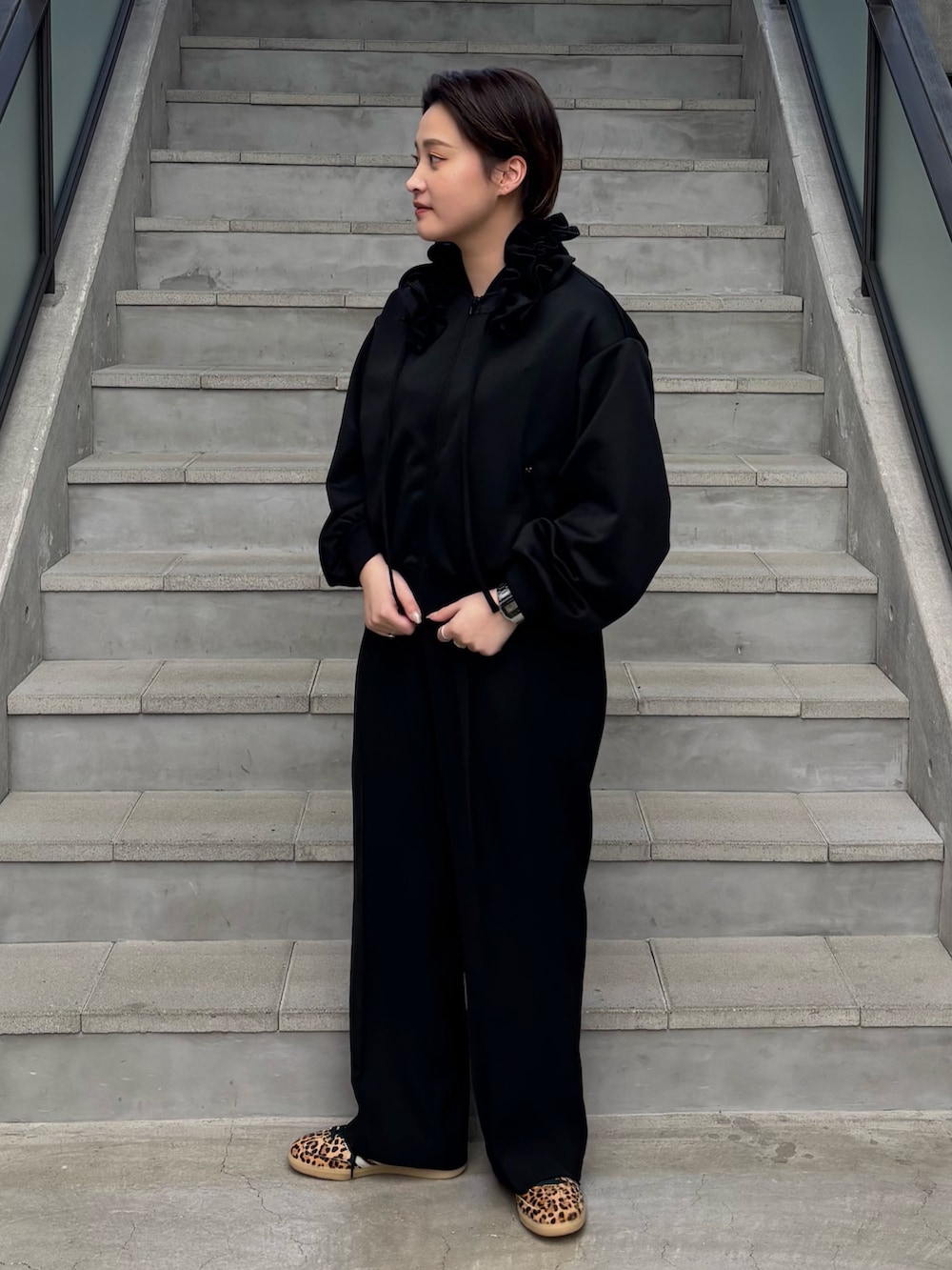 リラックス感もありながら、光沢感があり、綺麗めなシーンに合わせても◎