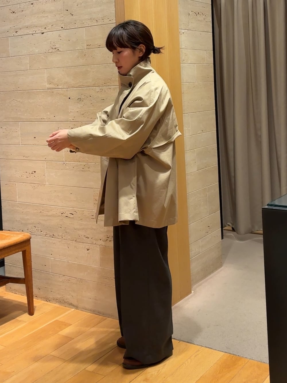セットでスカーフが付いてきますが今回はスカーフ無しでスタンドカラーで着てみました