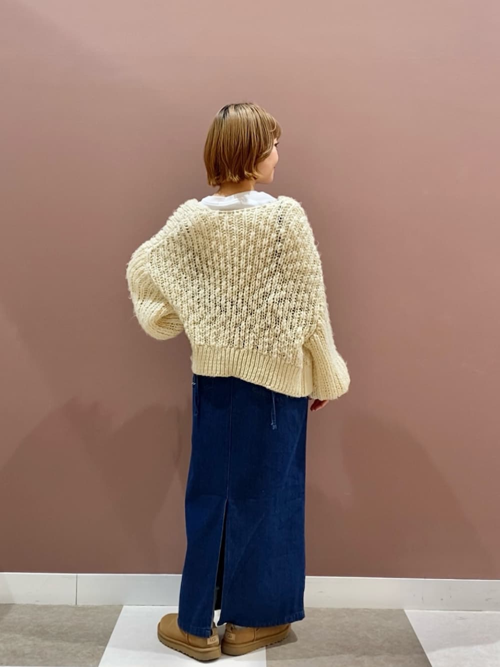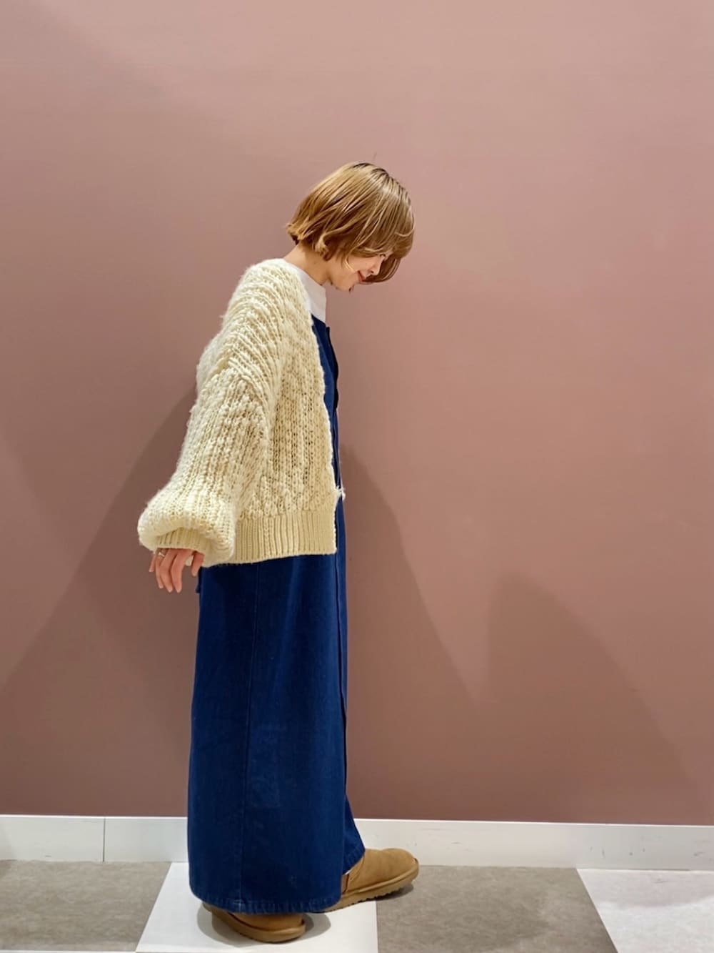 まだまだ肌寒いのでボリュームのある袖が可愛いニットカーディガンと合わせました。