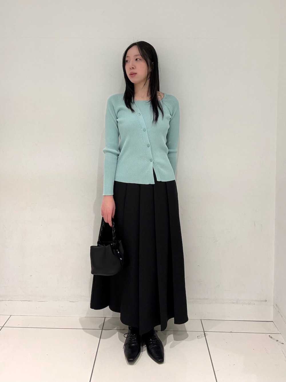 ミントカラーのアシメデザインのニットを使った春カラーコーデです👗