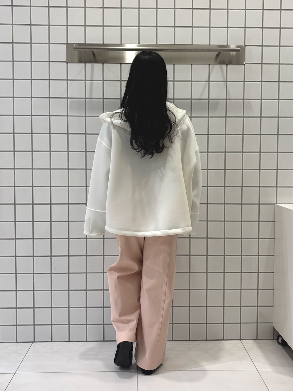 ホワイトアウター×淡いピンクパンツで、柔らかく女性らしい印象に🫖🎀