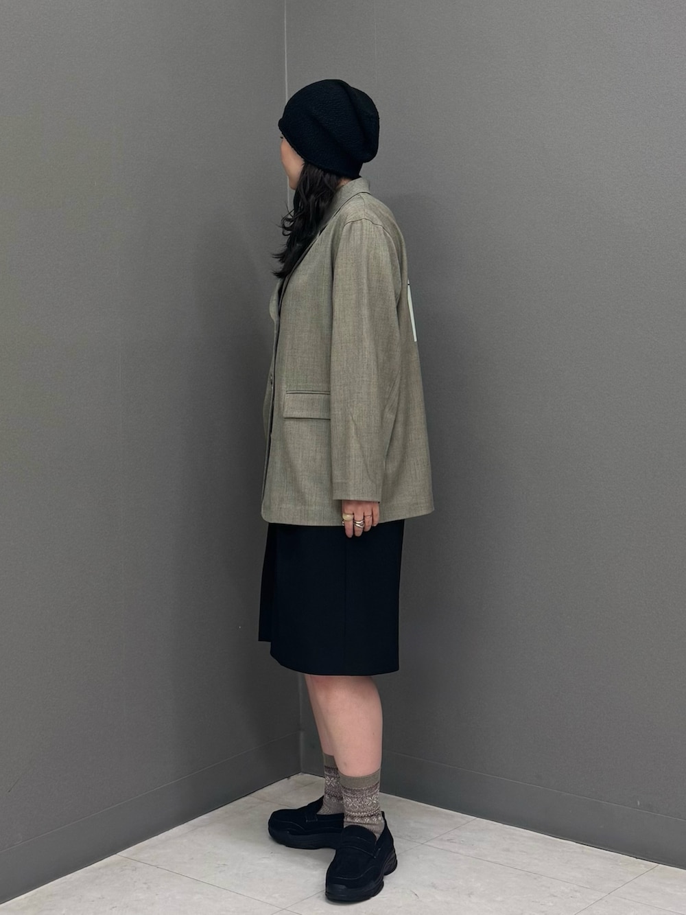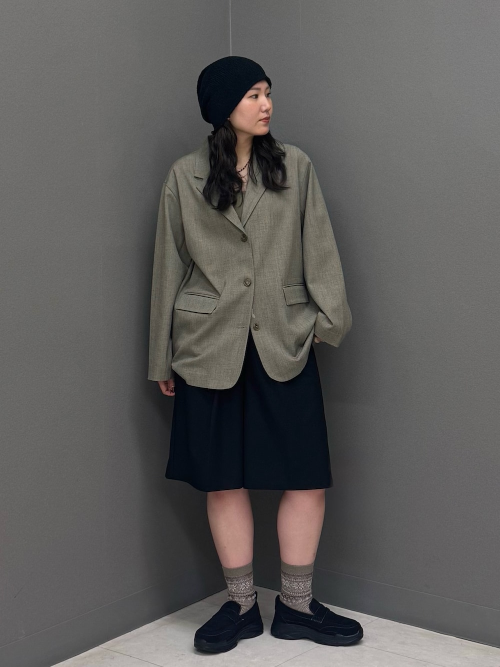 オーバーシルエットでモードな印象になりながらも、バックプリントの華やかさでレディ要素も🍸