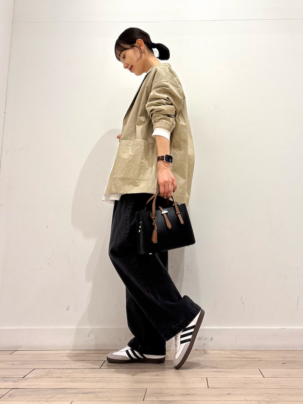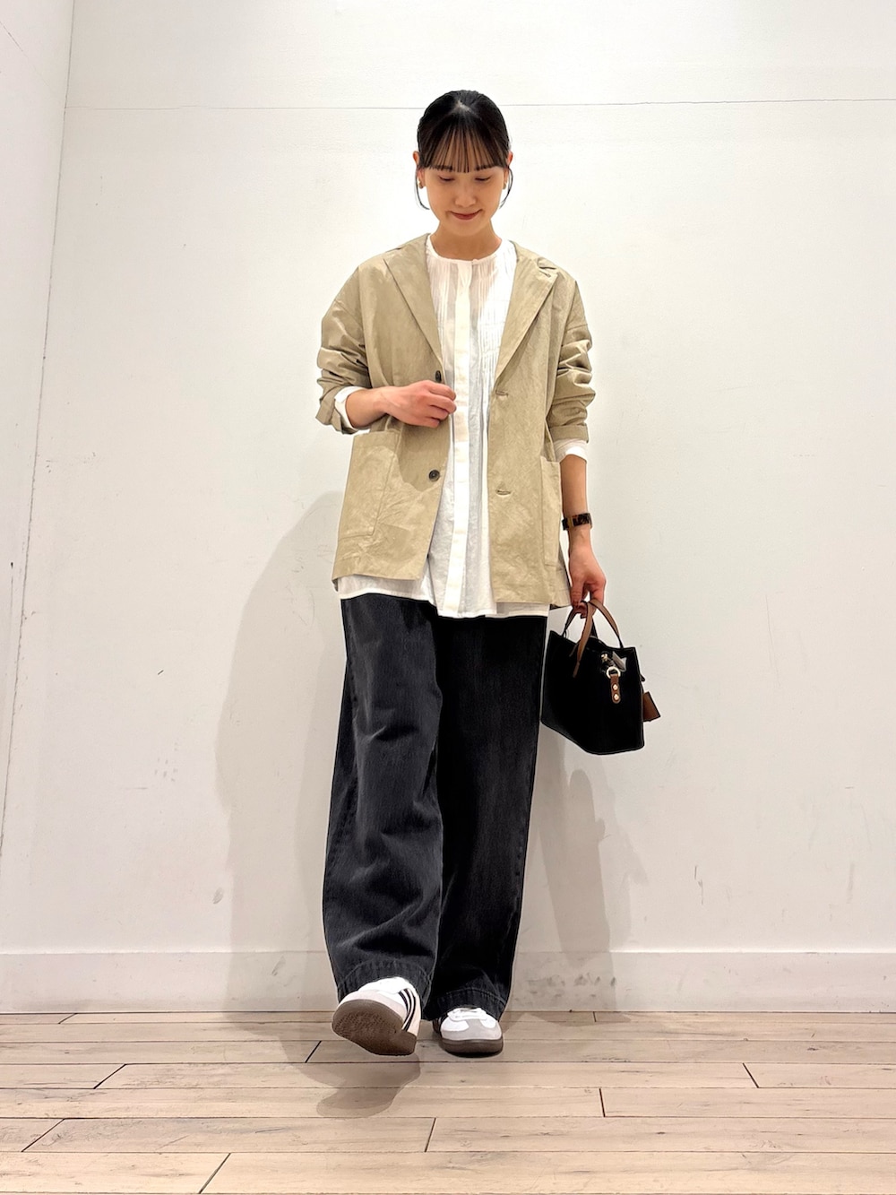 テーラードジャケットはしゃかしゃかとしたコットン生地でとても軽い着心地です👏