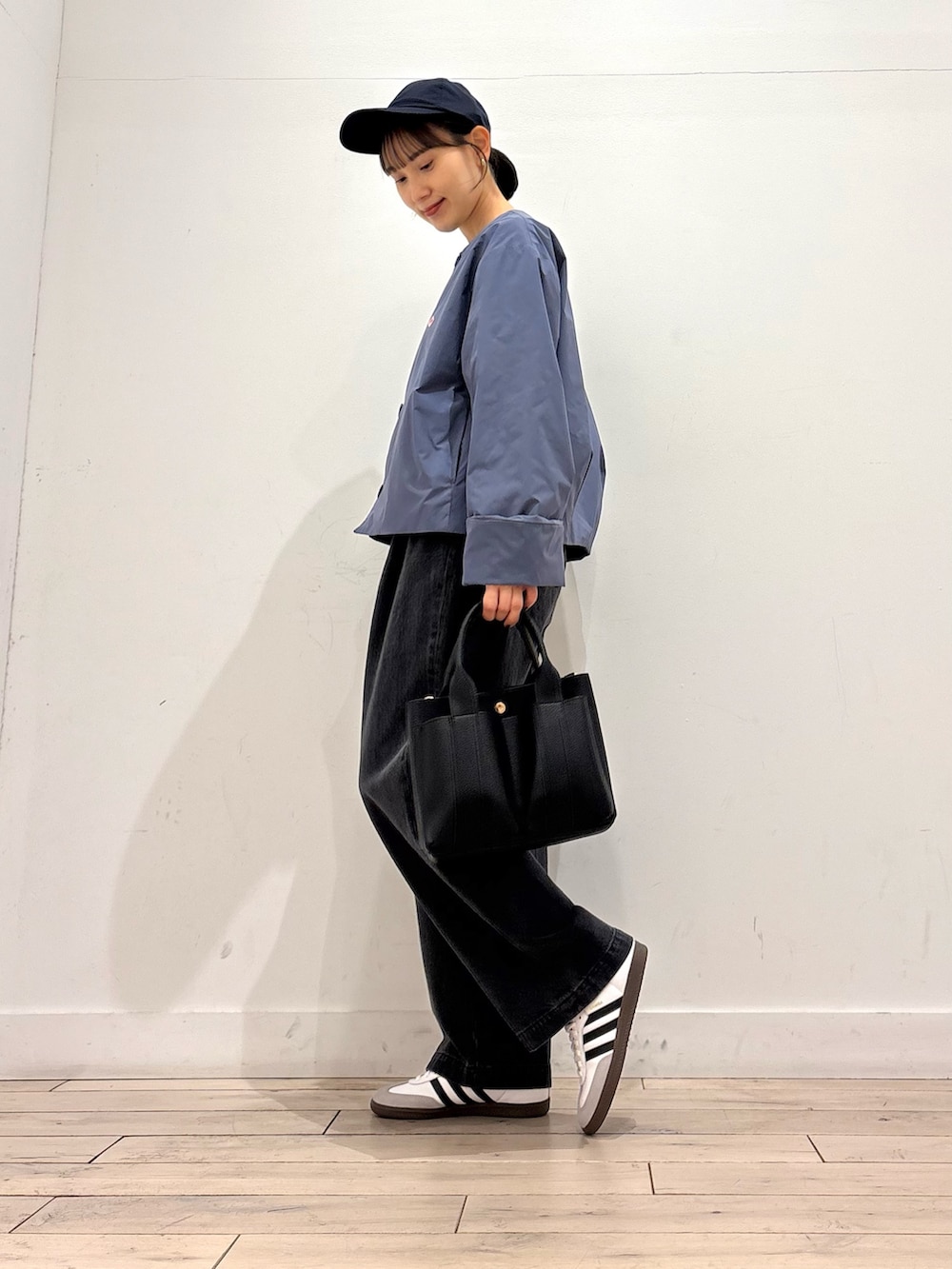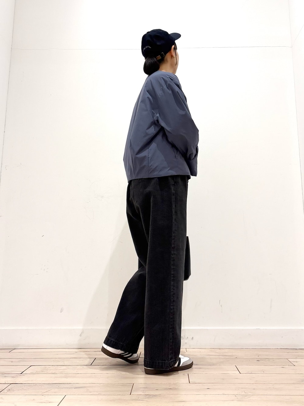 ワイドシルエットでショート丈のジャケットは自然にスタイルアップしてくれる一着です👏