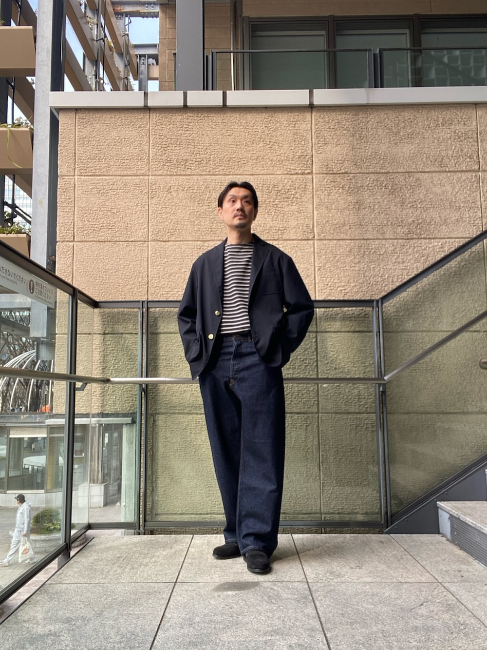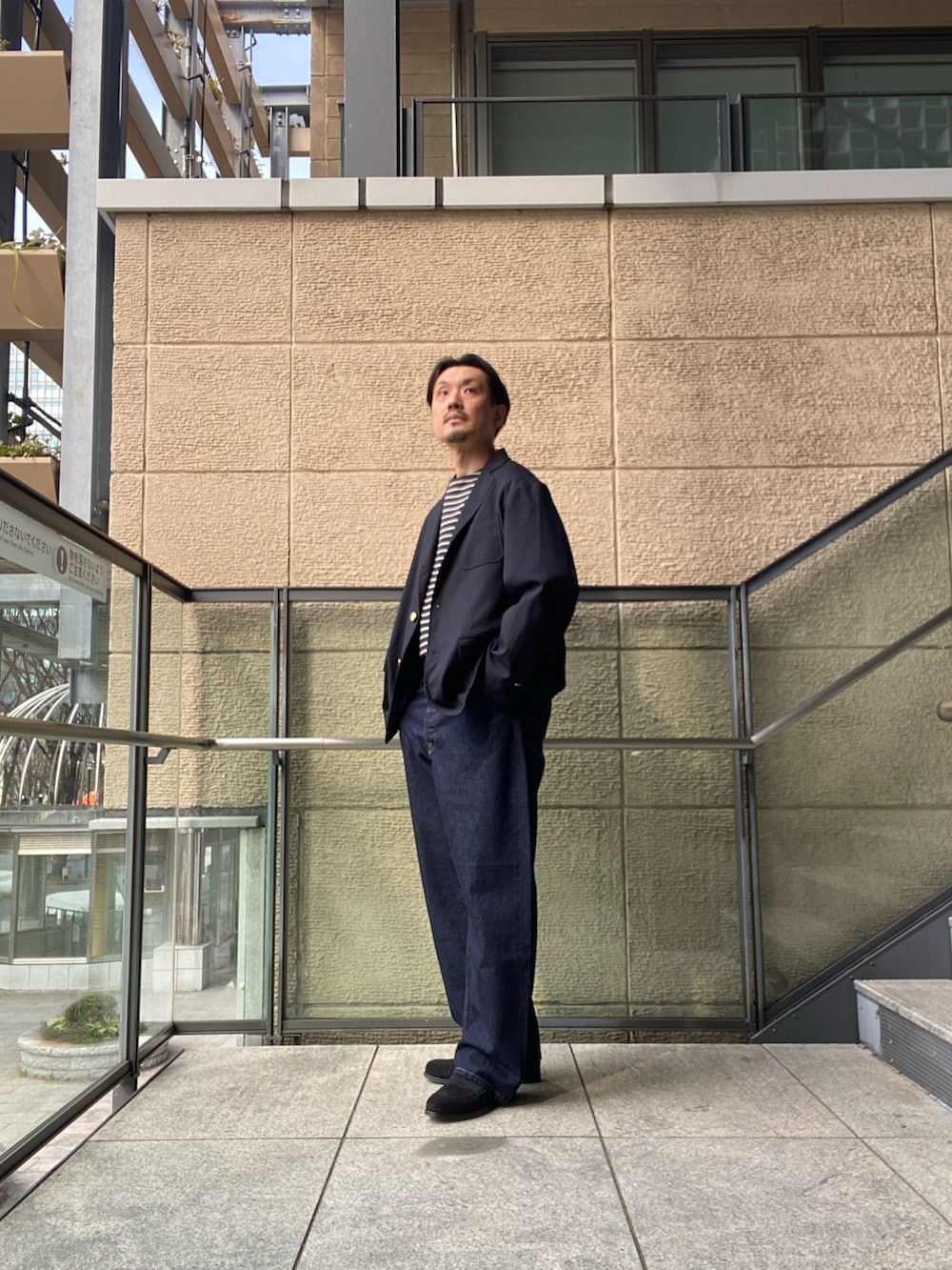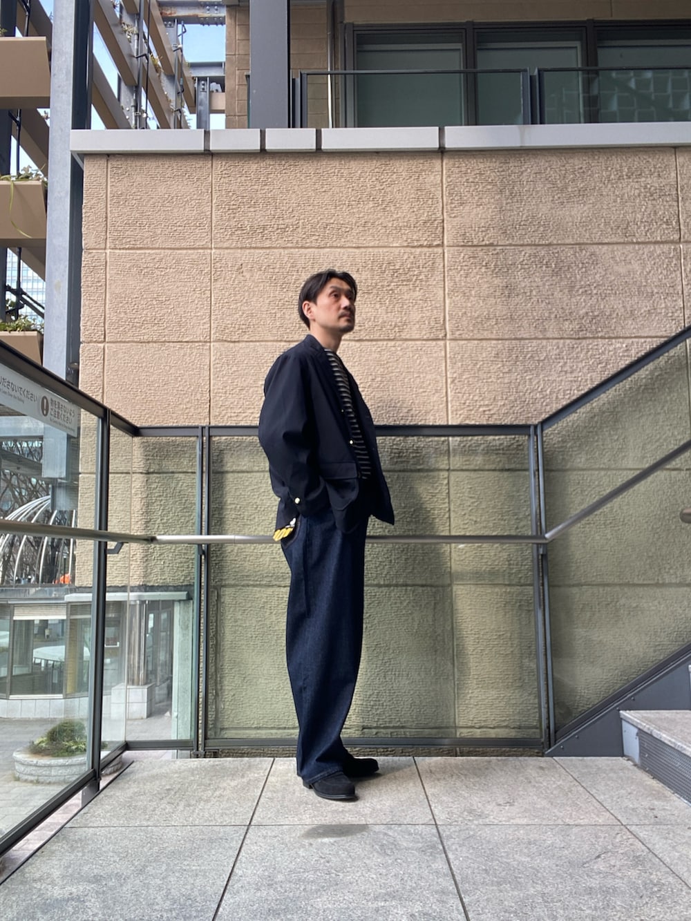 テーラードのかっちりさがありつつも程よくゆとりをもたせてモダンな印象をプラスしています。