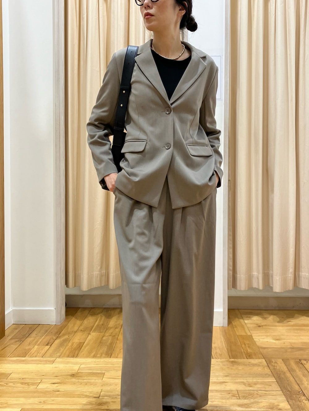 タックギャザーワイドパンツは、選べる3サイズなので、高身長さんでもしっかりフルレングスで履けますよ。