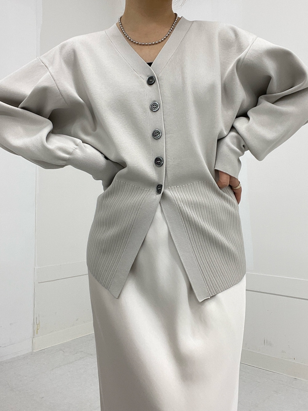 カーディガンは腰回りにリブがあるのでスッキリ着られます〇