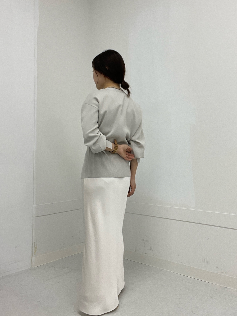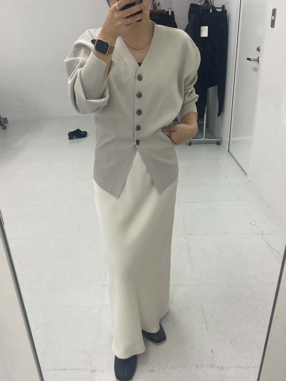 サテンスカートは歩くと上品なツヤ感が出ます!キラキラしすぎてないので合わせやすいです✨