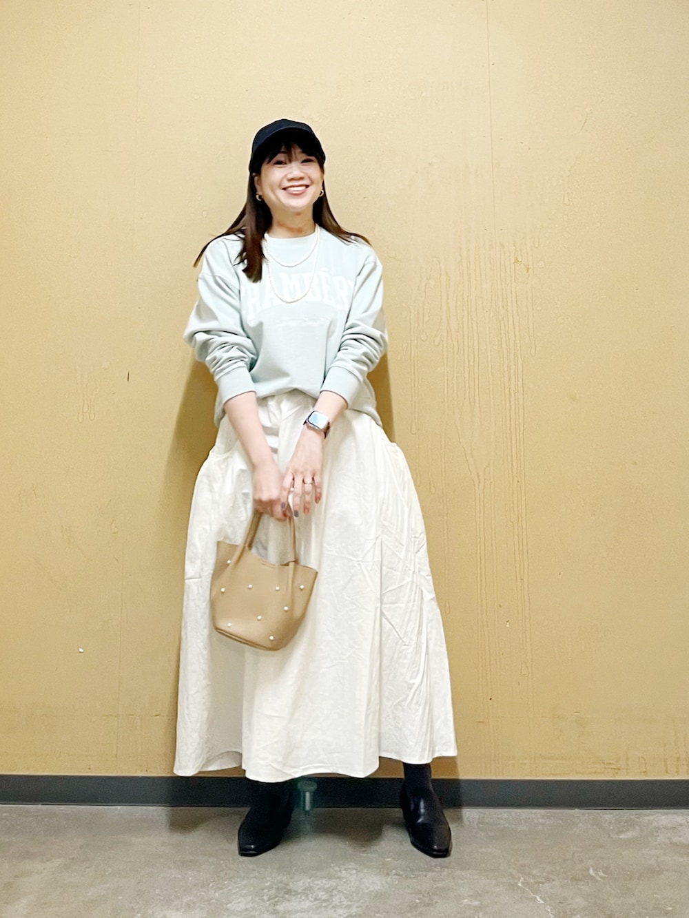 ロゴスウェットは毎シーズン人気アイテムです☆ふわっとしたシルエットのスカートとの相性バツグンです!!