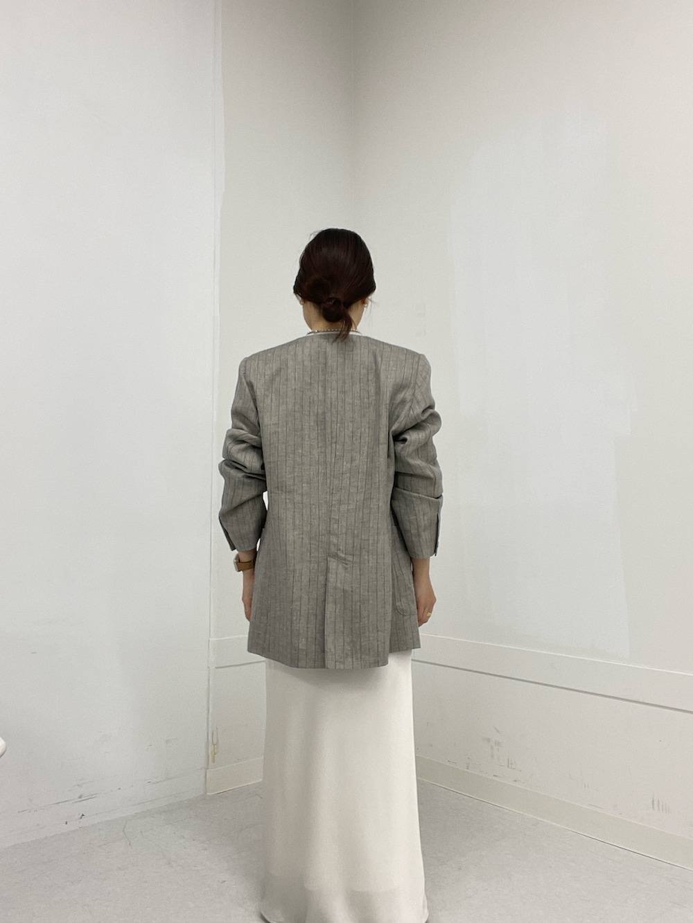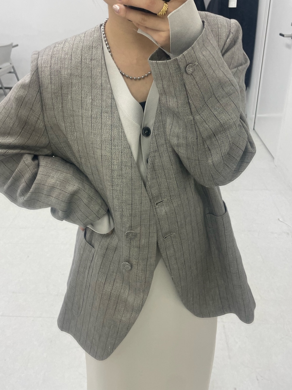 ラメリネンストライプノーカラージャケット