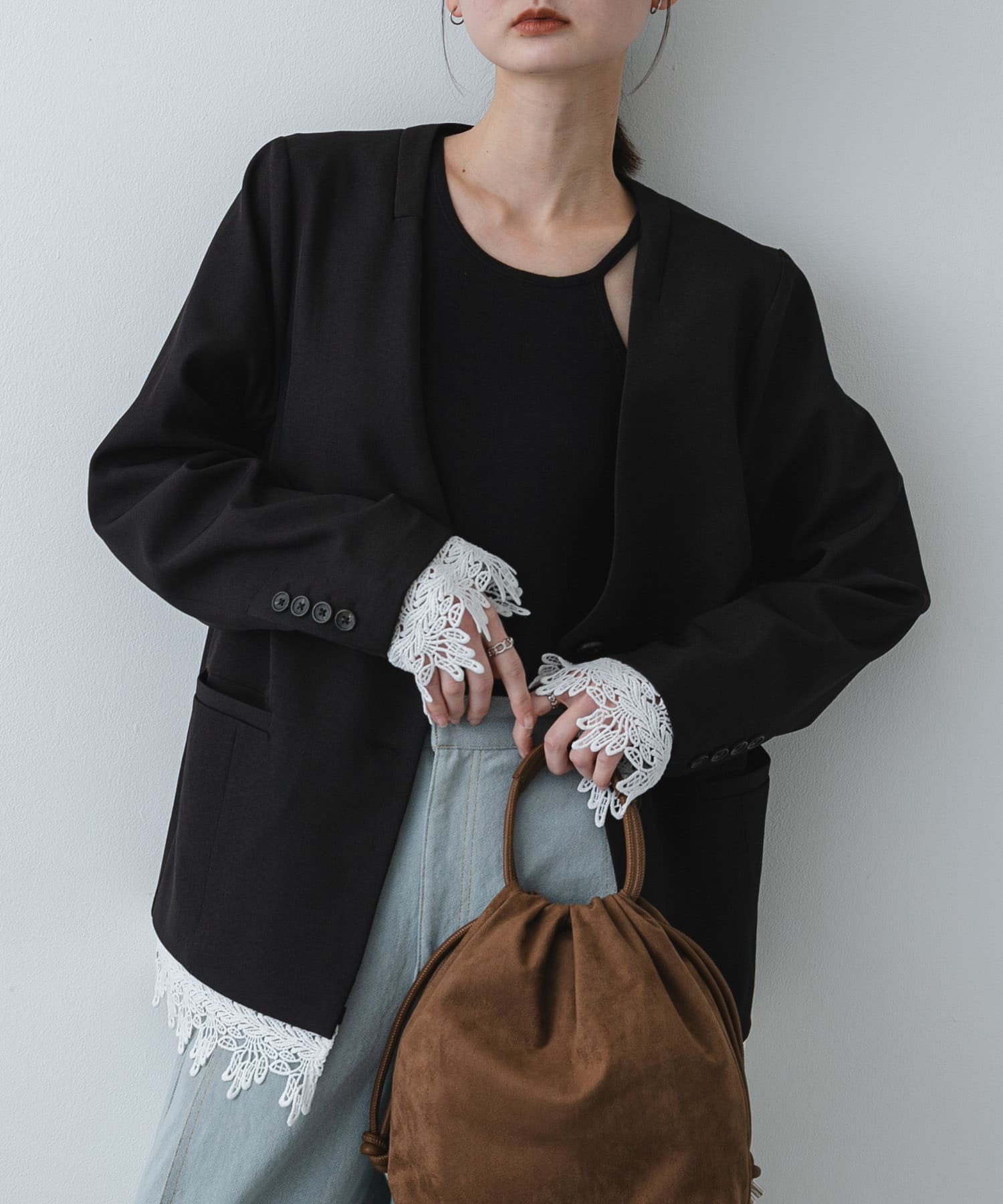 SENSE OF PLACEレースレイヤードノーカラージャケット- 着用カラー: