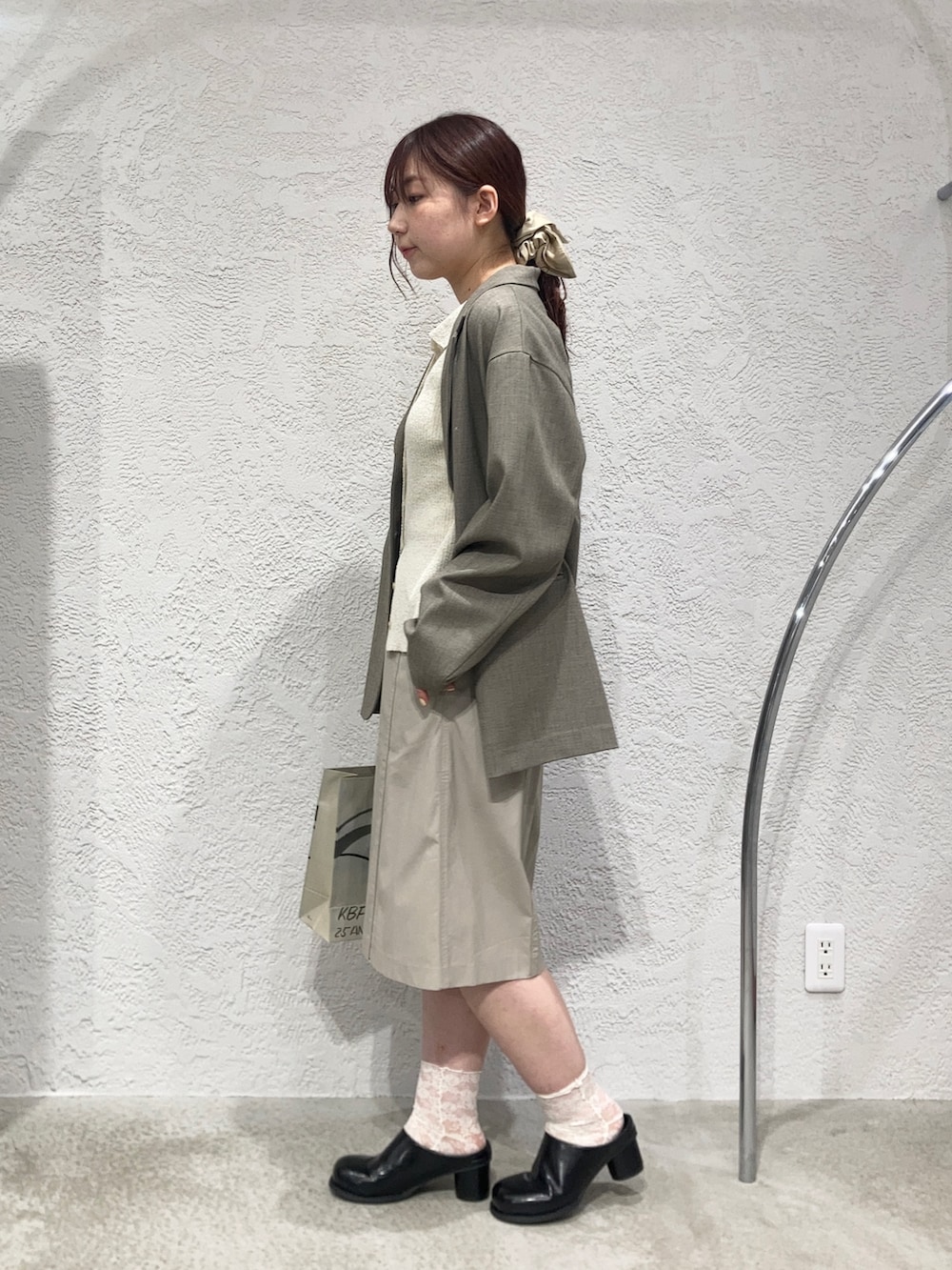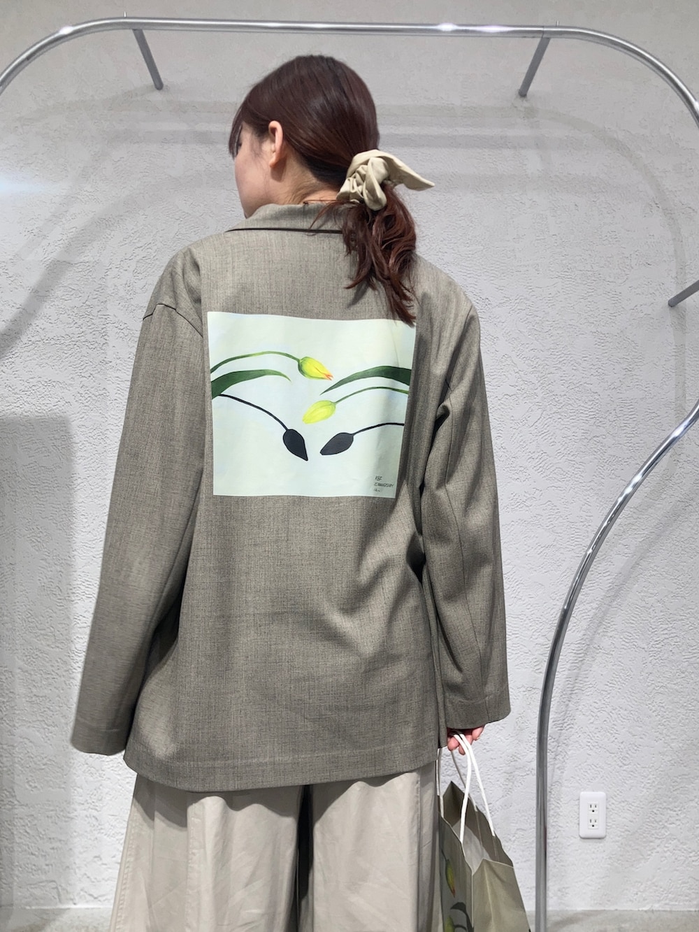 全体をグレージュ系のトーンで統一して、プリントの色味が映えるように意識しました!
