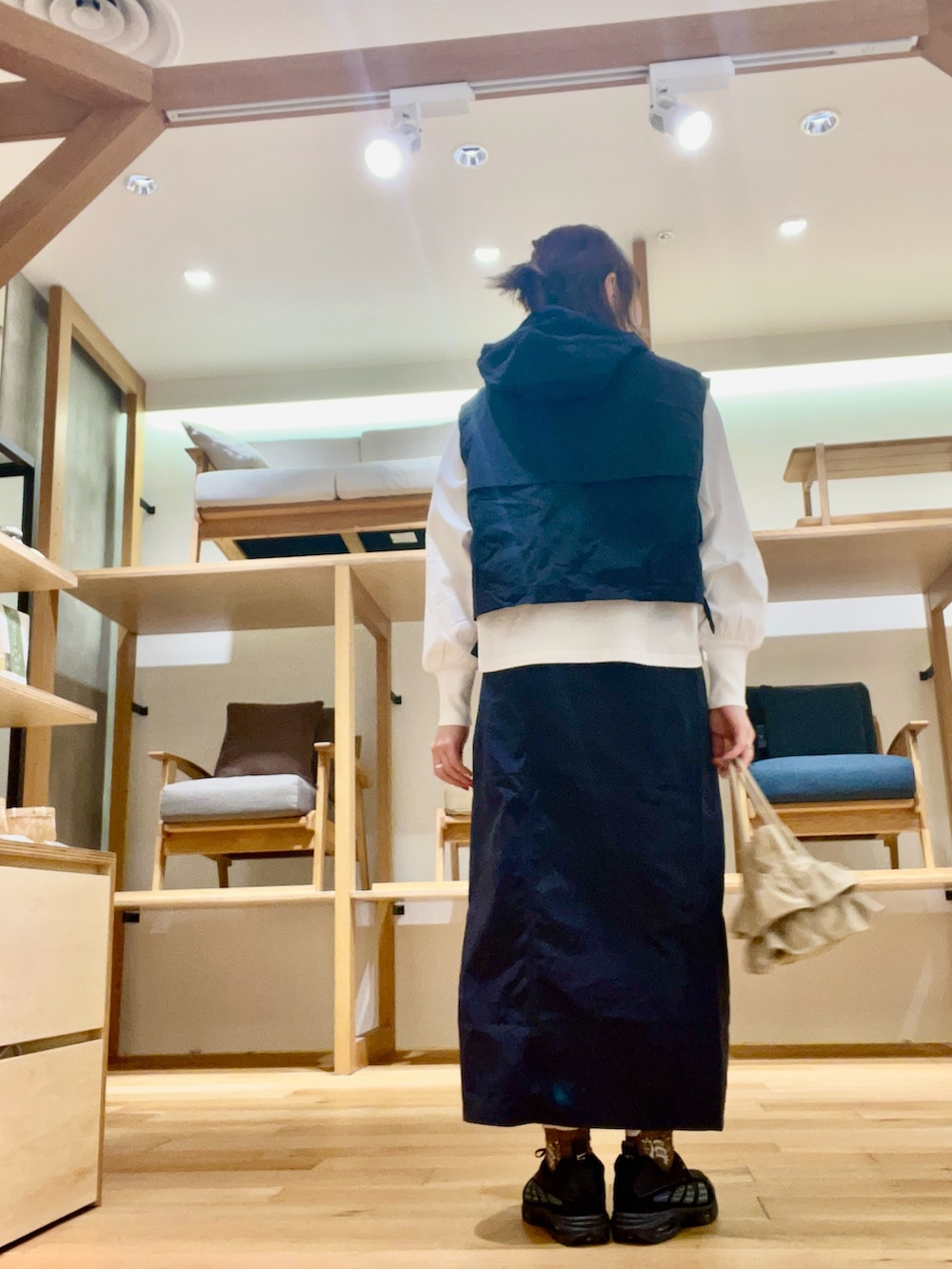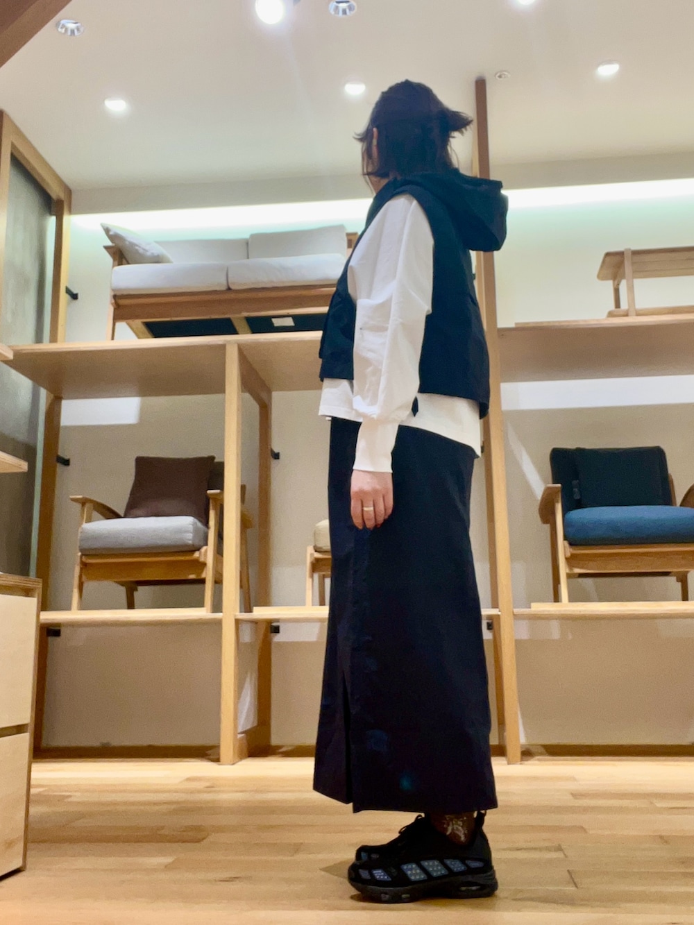 ベスト×スカートは同素材のアイテムでセットUPで組み合わせました‼︎