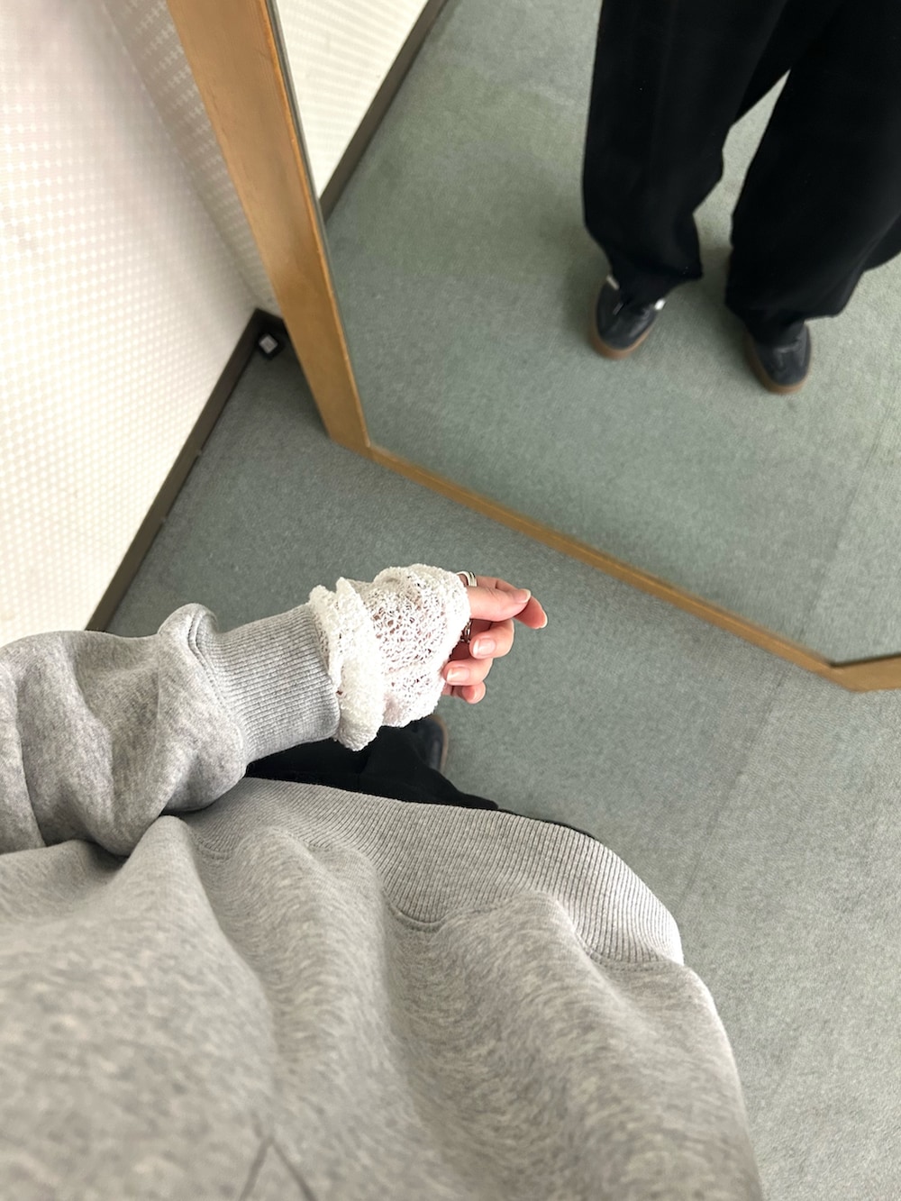 レースのロンTをレイヤードして、女性らしさをプラスしたスタイリングに仕上げました。