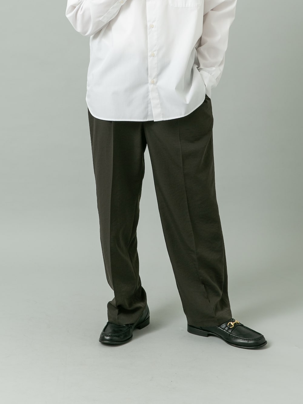 パンツはややゆとりのあるスラックスデザインで着心地軽やかできれいな印象です。
