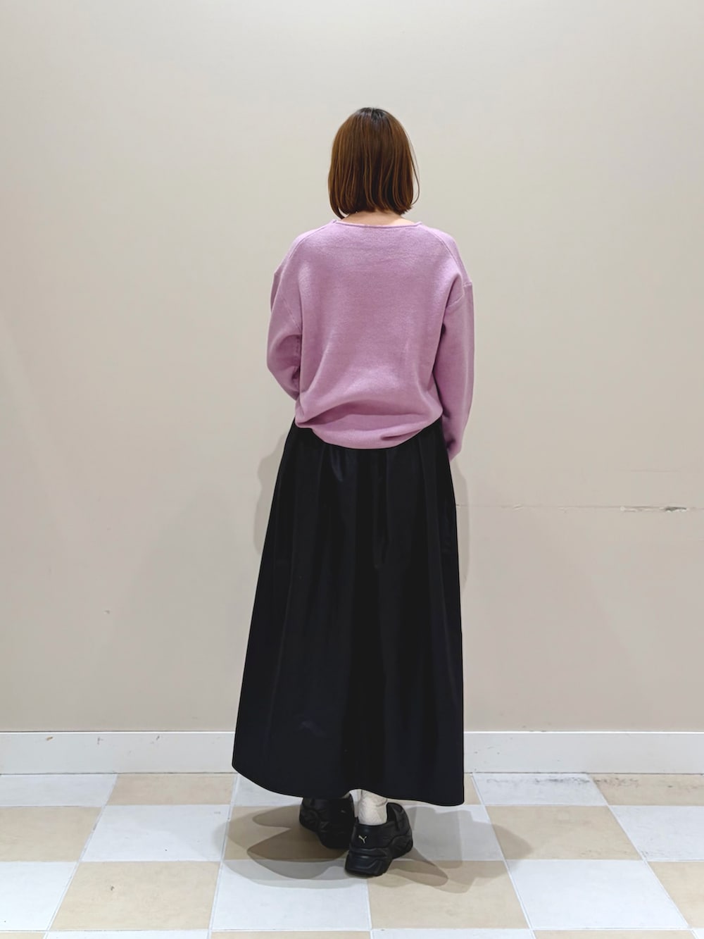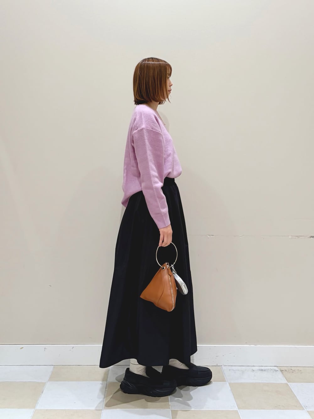 明るくて柔らかいトーンのニットにボリューム感のあるスカートでコーディネートしました!