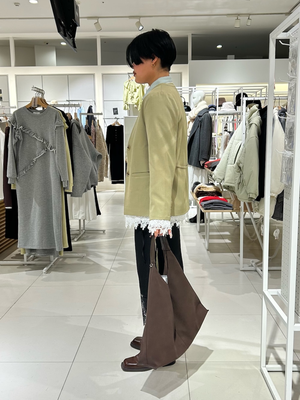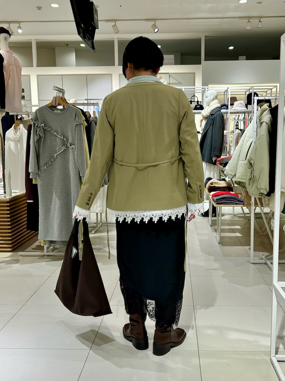 SENSE OF PLACEレースレイヤードノーカラージャケット- 着用カラー: