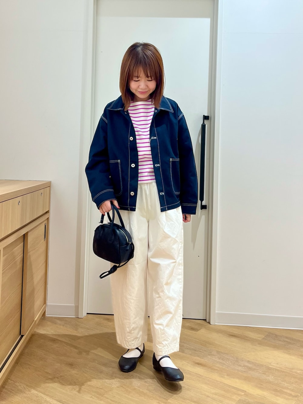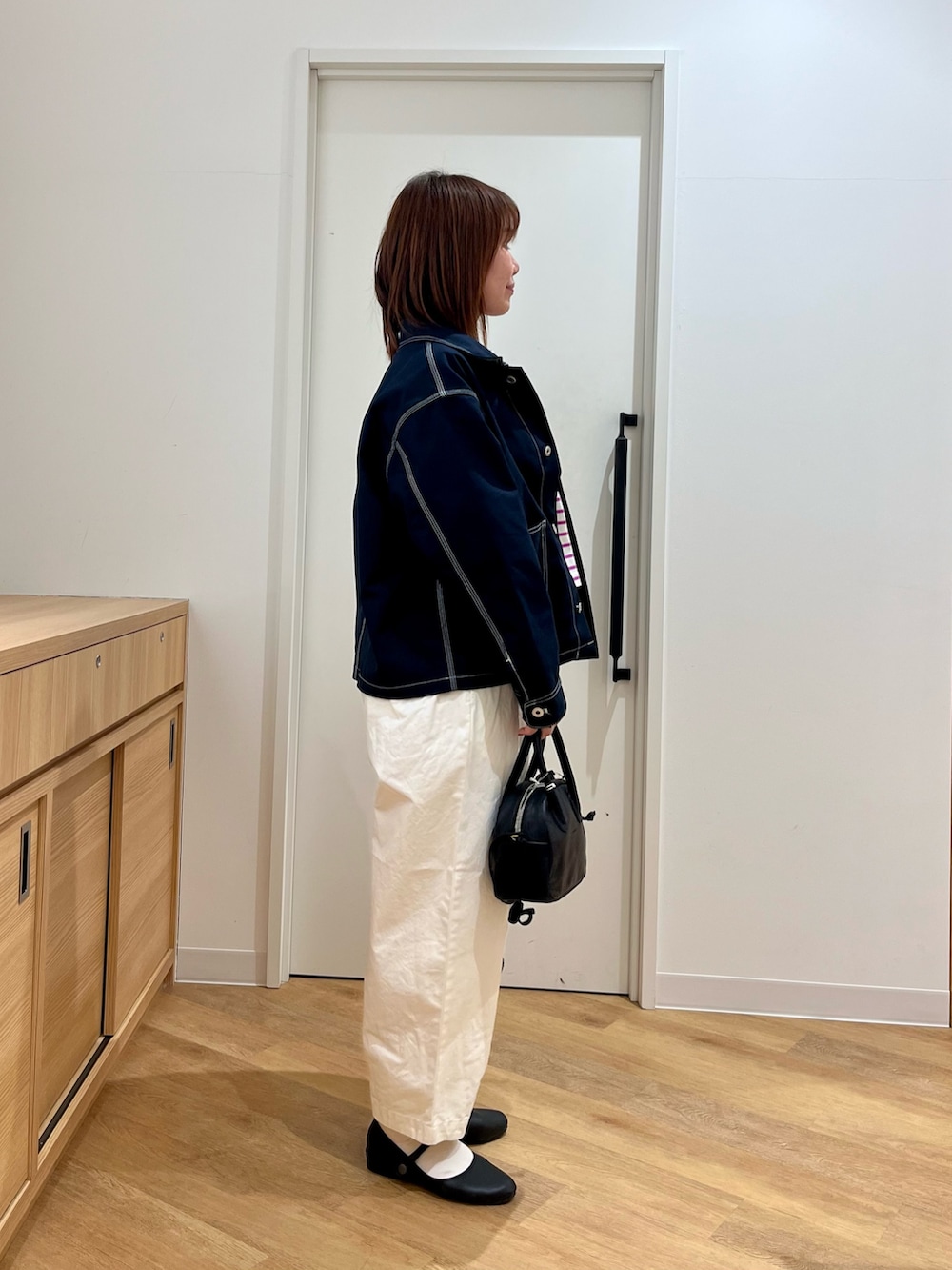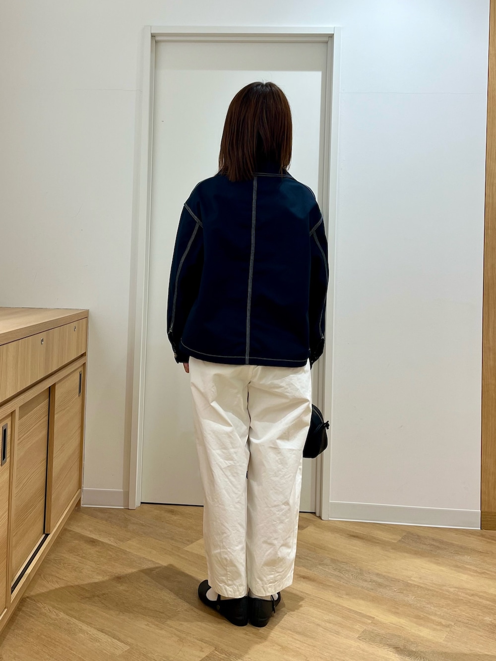 ハリのある生地で丈も長過ぎないので、かぐれのボリュームのあるパンツとも合いますよ。