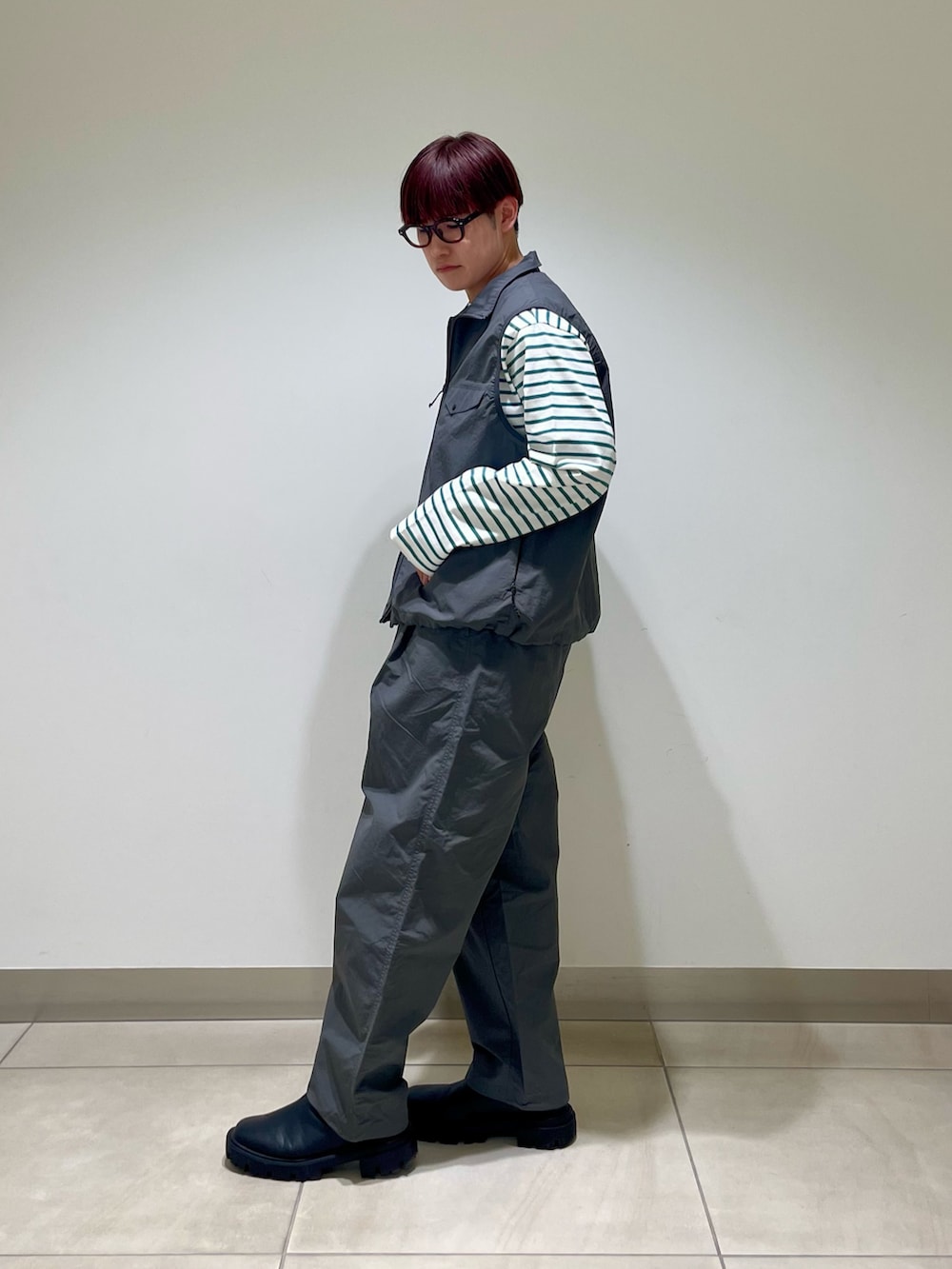EKALのナイロンタッサーベストとトラウザーは軽量性、撥水性、UVカット機能のある生地を使用していてゆったりとしたサイズ感でとても軽いのでストレスなく着用いただけます︎︎👍🏻︎︎