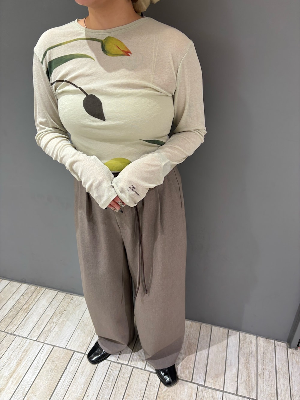 程よい透け感のあるシアーのトップスにLee Izumida氏のイラストがプリントされたオシャレなアイテム⸝꙳.˖