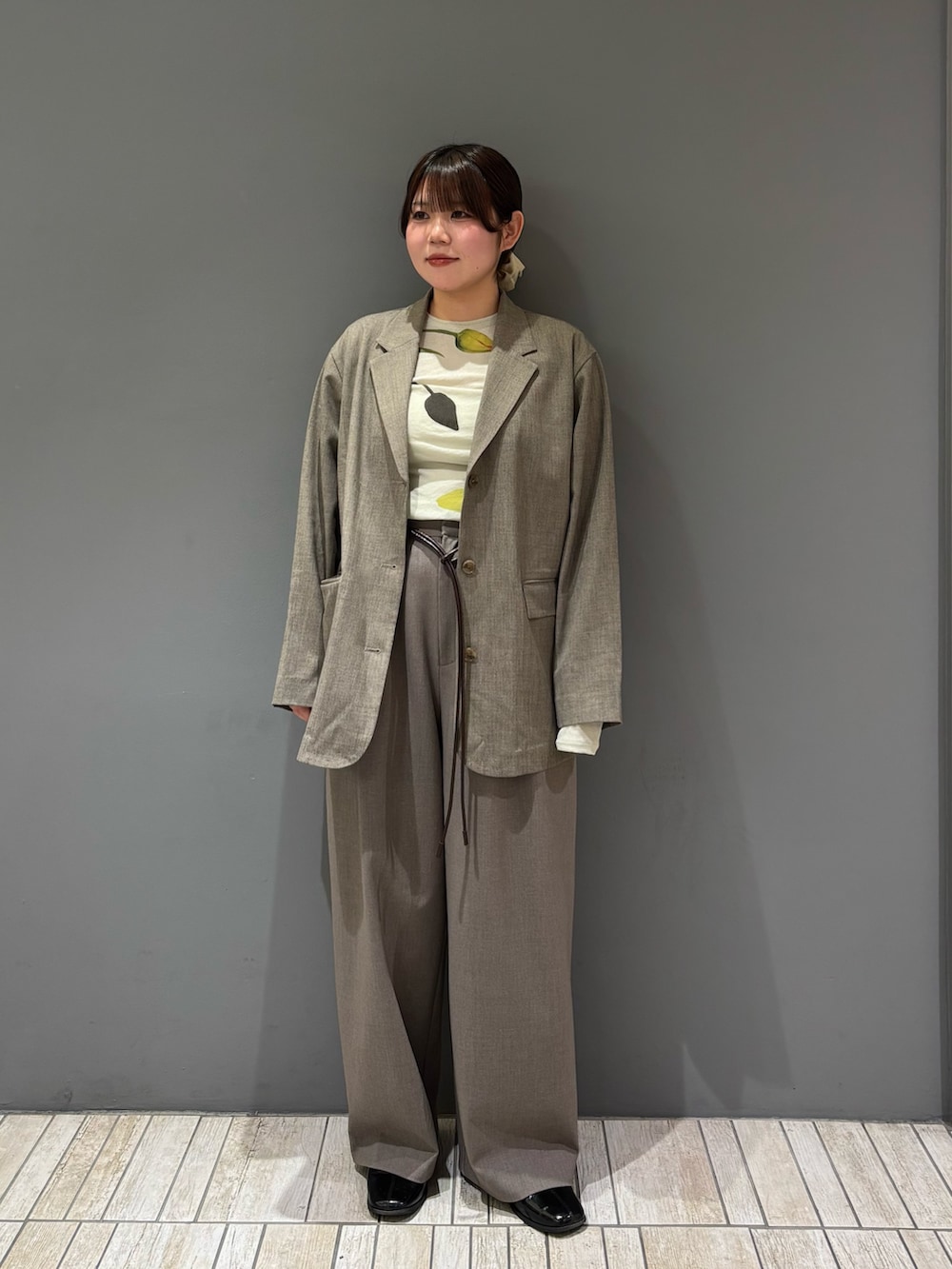 着てみた感じ、裏地が付いていないので生地がストンと落ちてくれるので体型カバーに🙆🏻♀️骨格ストレートさんはジャケット優勝アイテムなので要チェックです!!👀