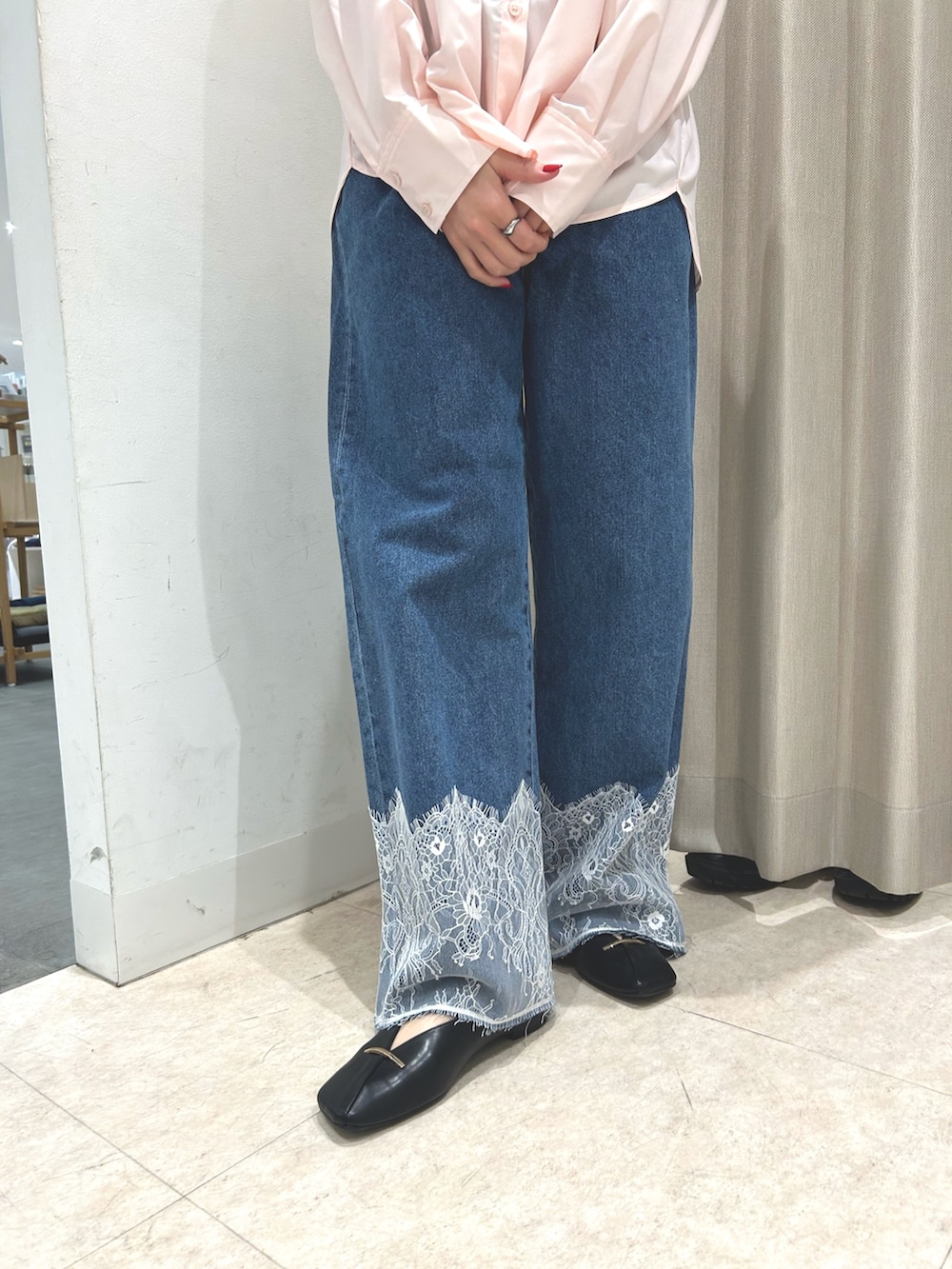 レースドッキングデニムパンツ