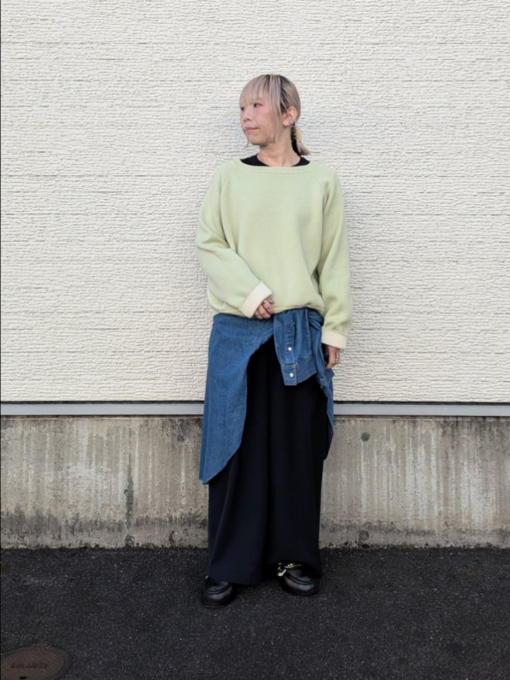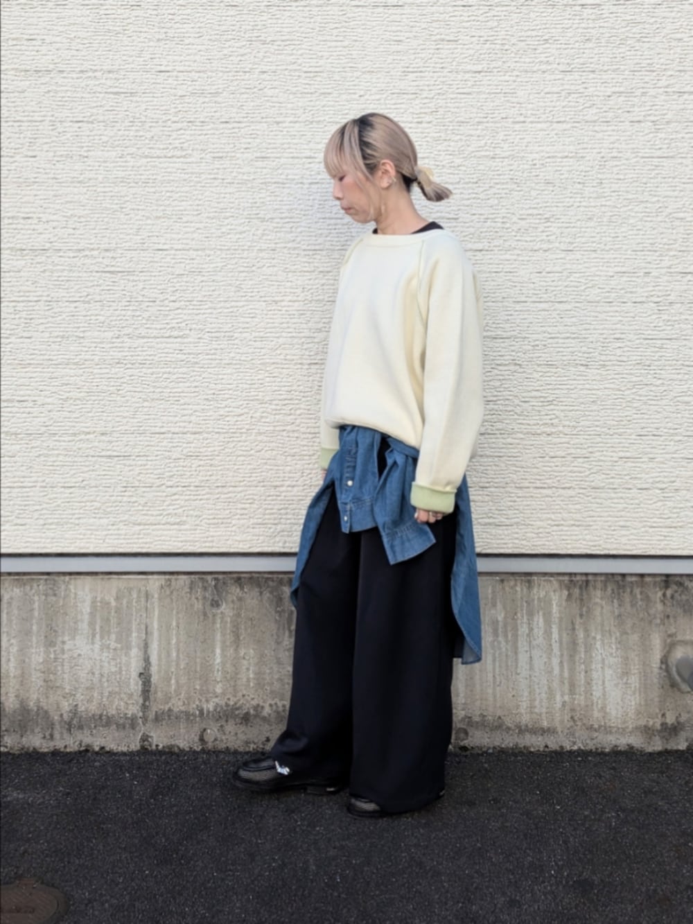 デニムシャツを腰巻して春っぽさをプラスしてみました。