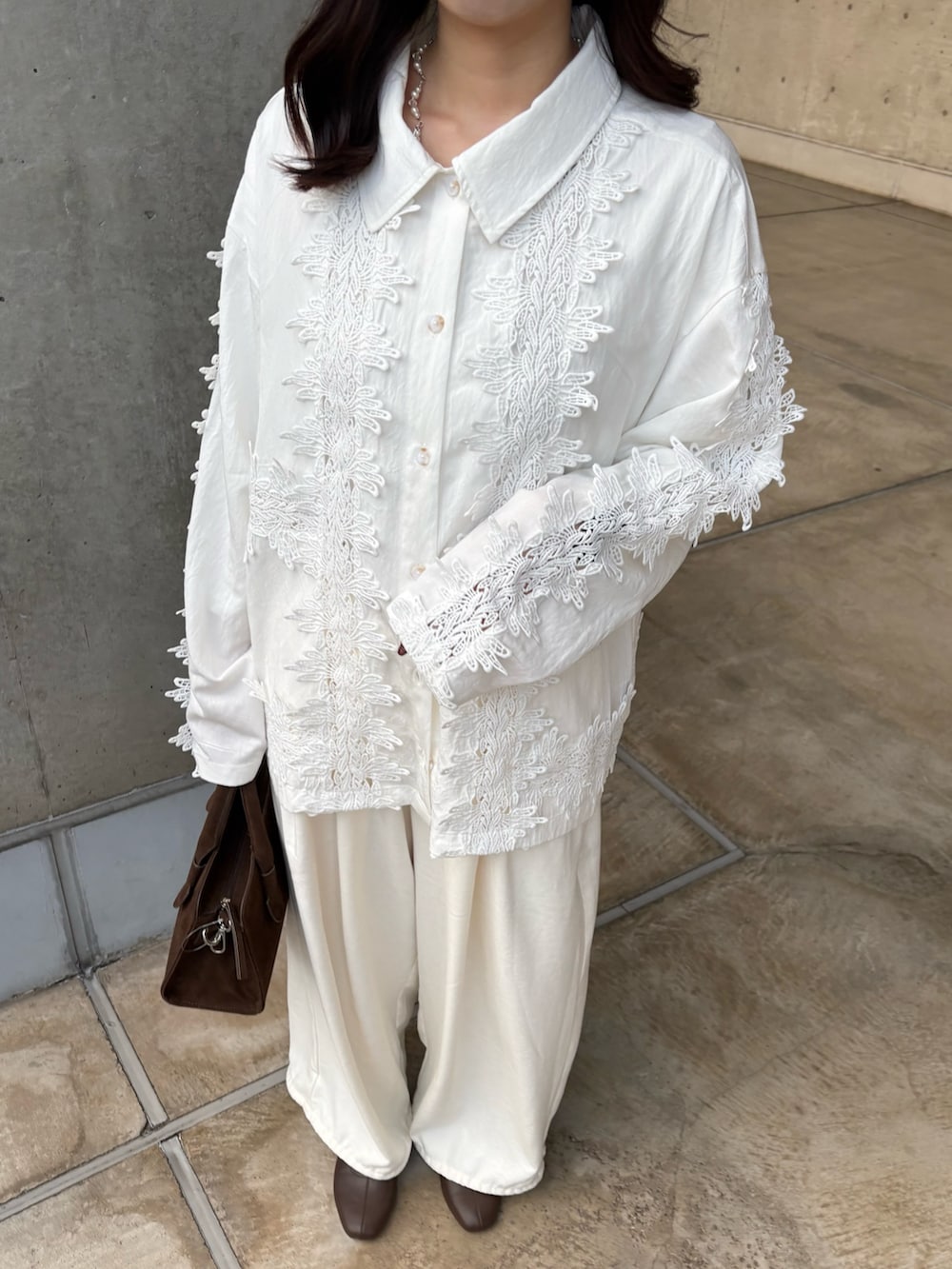 立体的なレースが華やかなヴィンテージライクシャツ👔