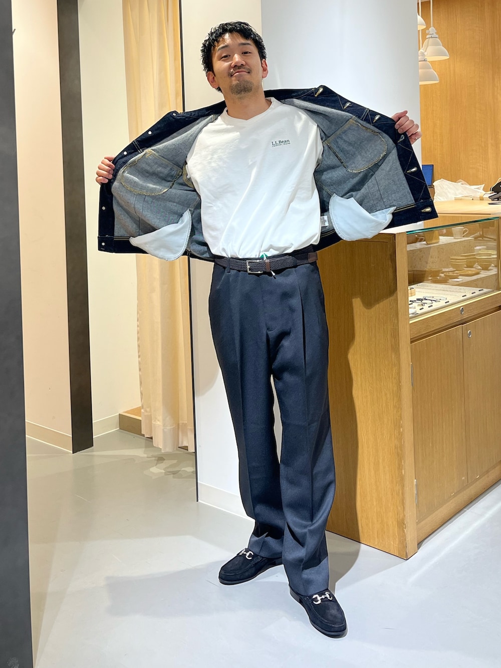 スラックスなので、タックインしてもいいし出しっぱなしでもいいです!