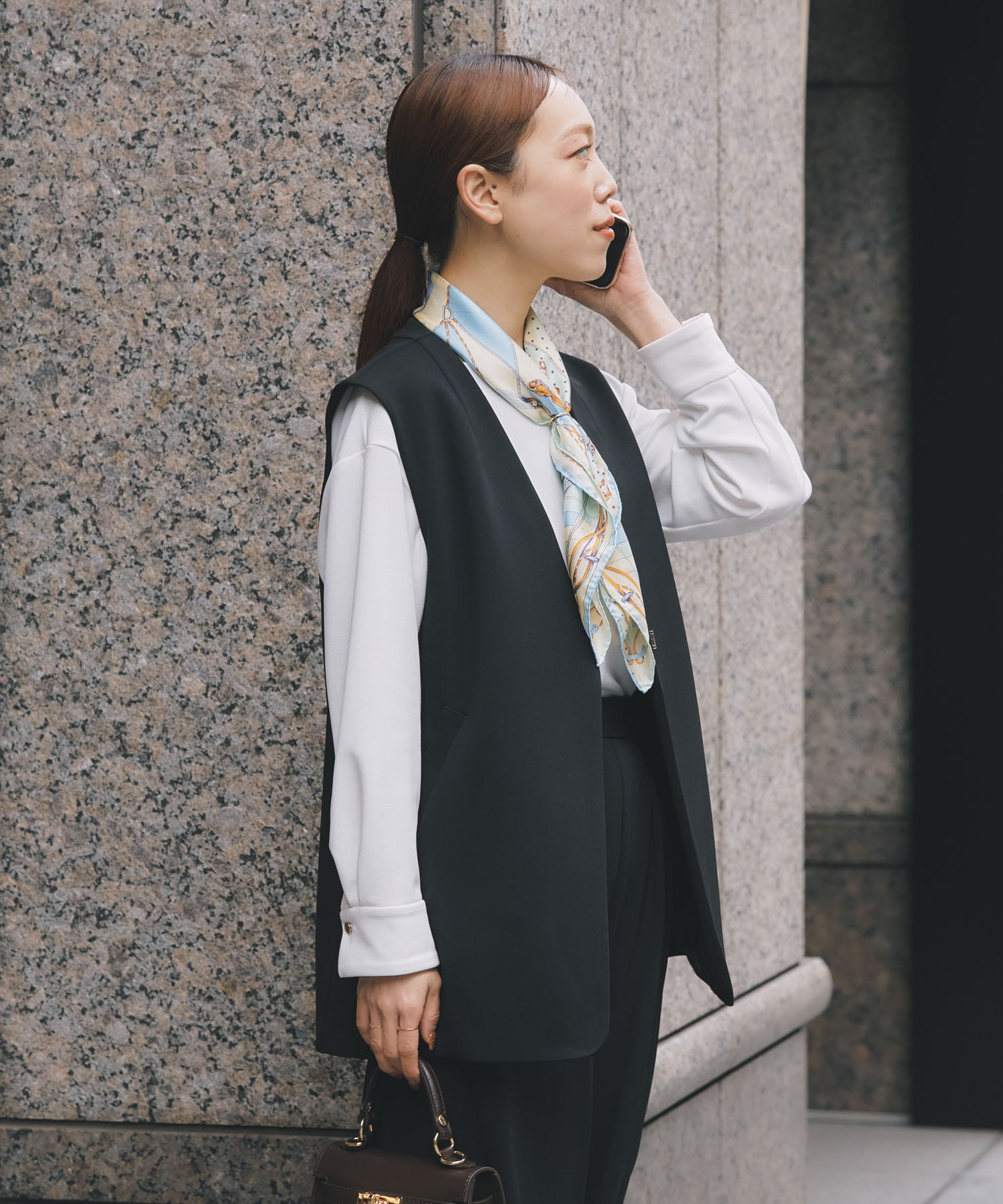 ジレだと、寒い日はニット合わせたり気温に合わせて調整できます。