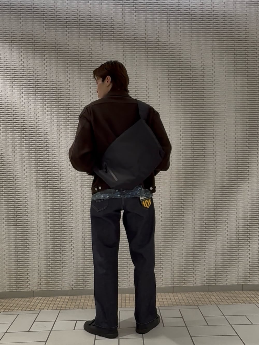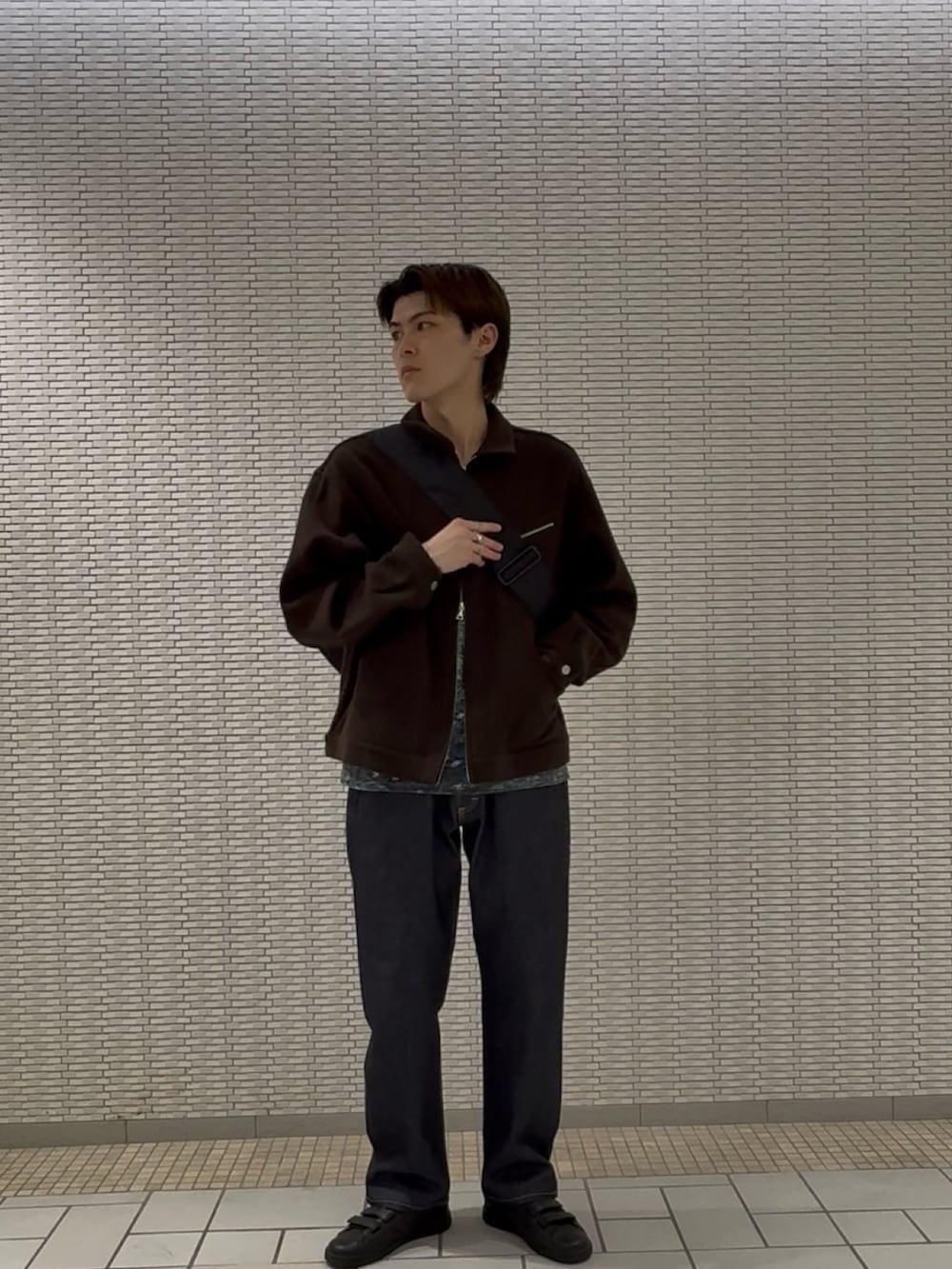 濃いめのデニムとブラウンのアウターは相性抜群で使いやすいです!
