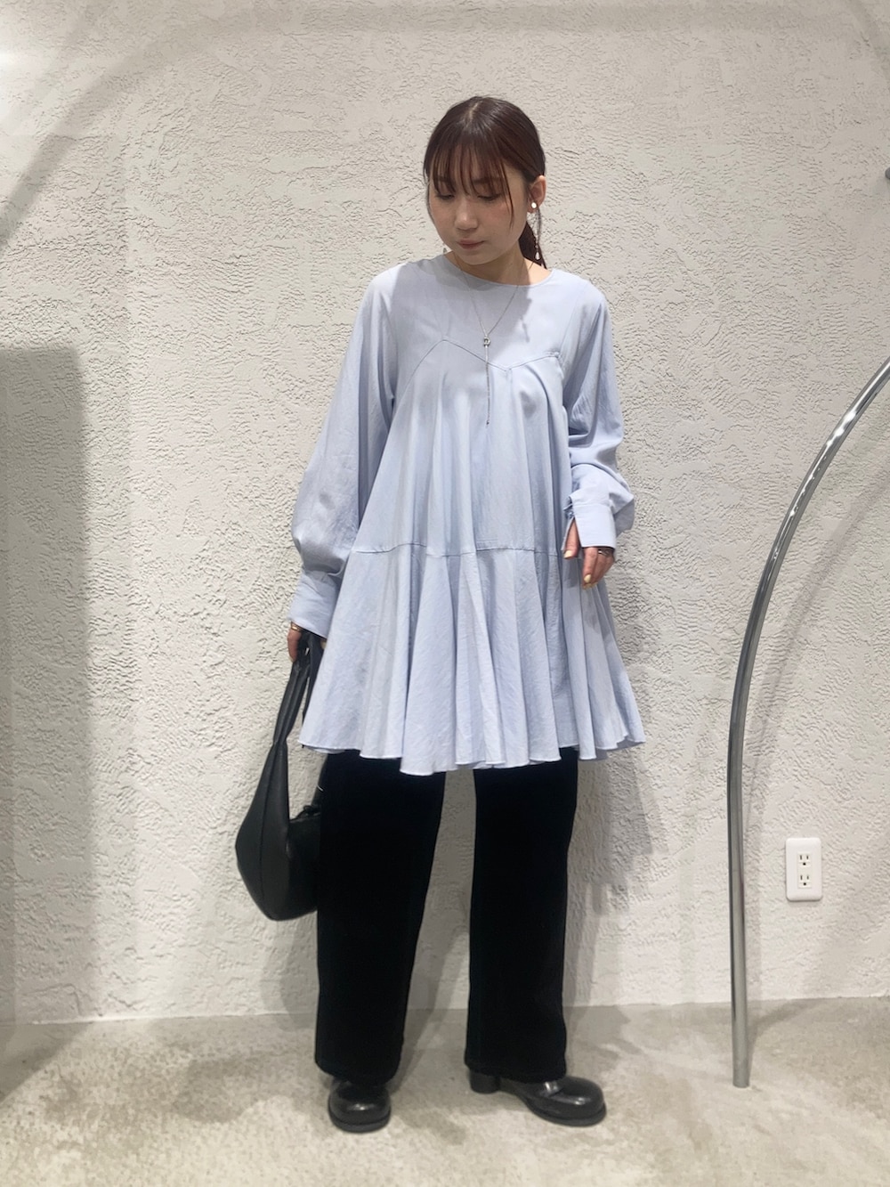 首元はすっきりとした印象で、裾にかけてたっぷりの生地でふんわりとボリュームが、くるくる回りたくなるかわいさです!