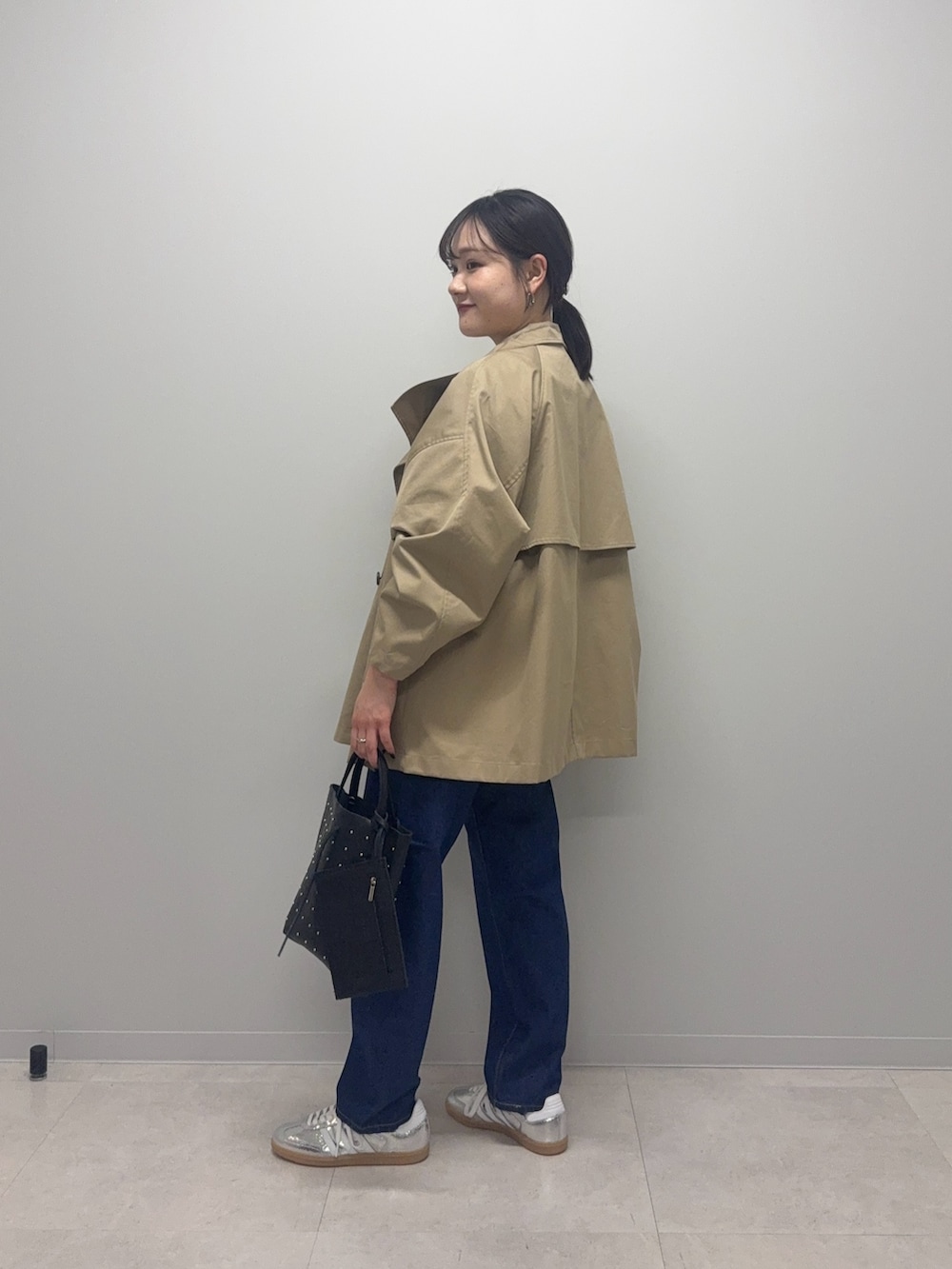 ミドル丈トレンチコートはサイズ2サイズ展開なので低身長の方もバランスよく着て頂きやすいです!私は36の小さい方着てます!