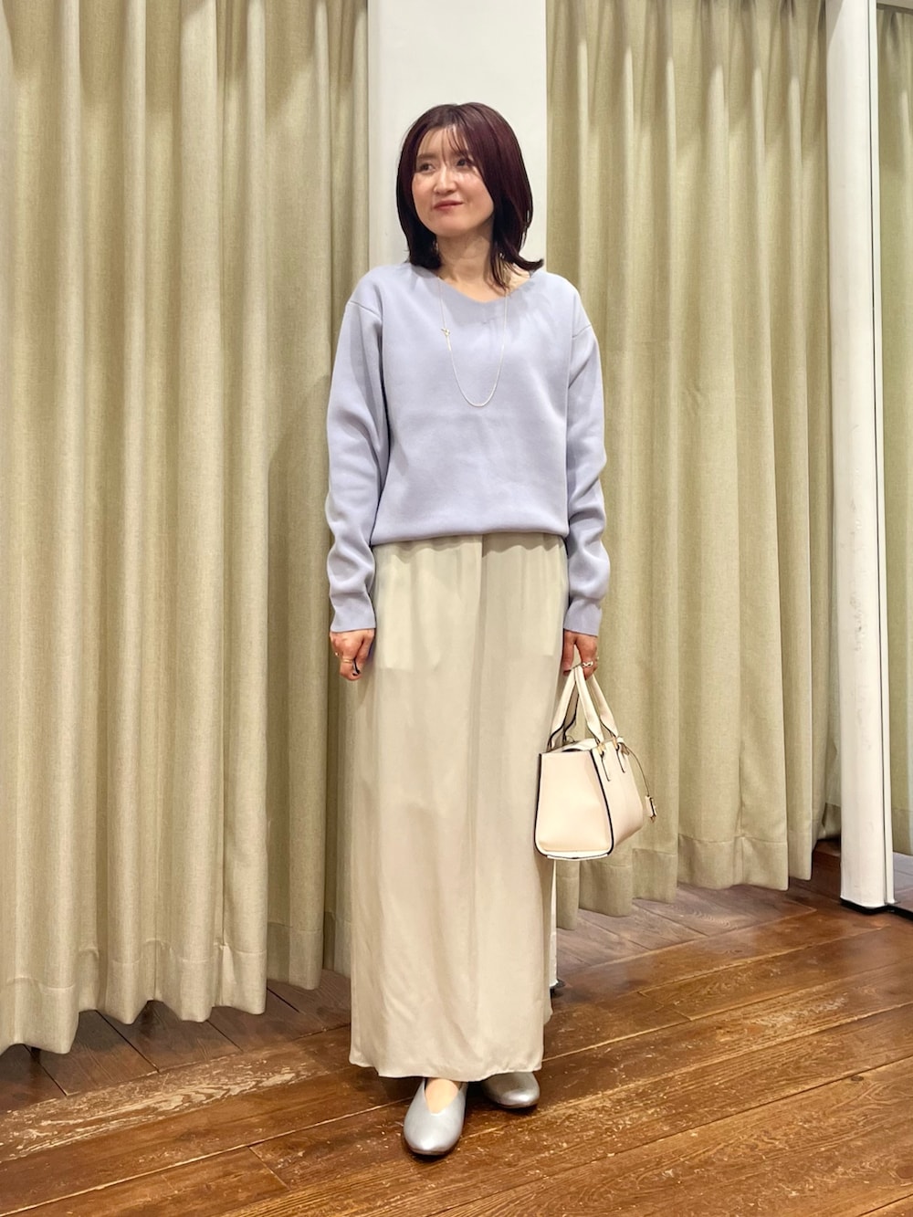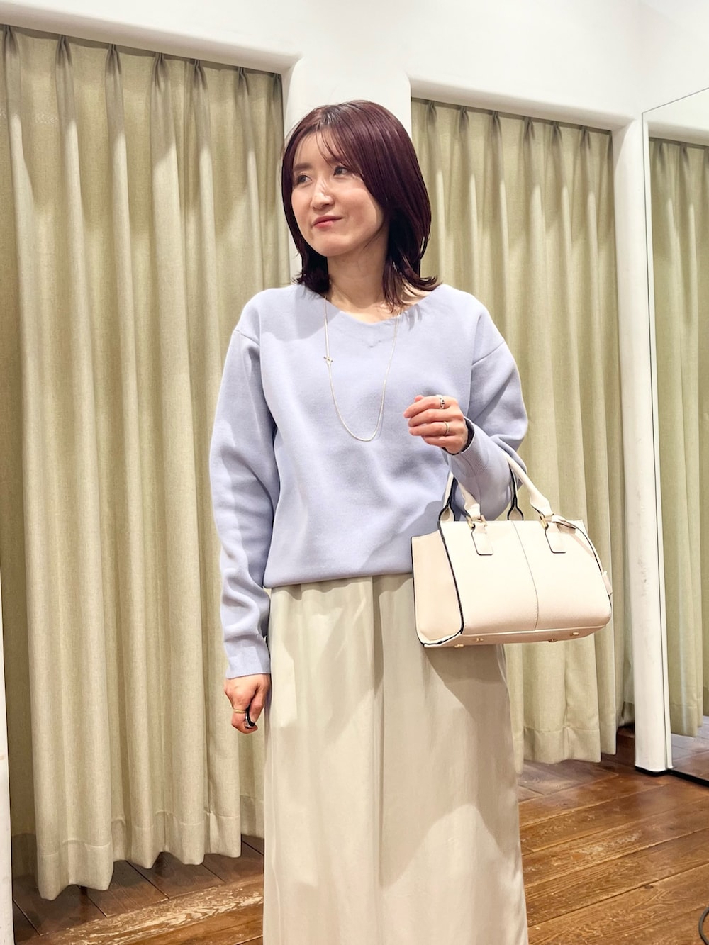 トップスは春にぴったりな優しいラベンダーのカラーで、マシンウォッシャブルも可能で毛羽立ちにくいので機能面でも抜群です。