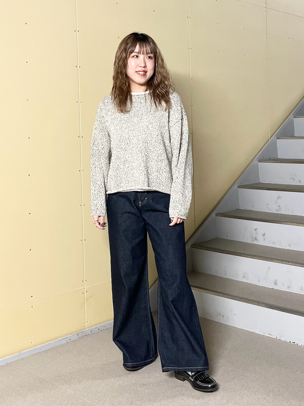 首元はボートネックで少し広めですがインナーを合わせてあげると首周りも気にならずに着用できます◎