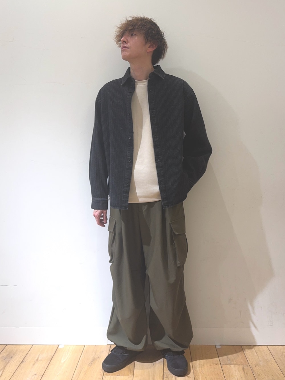 ボトムは綺麗見えする大人気のカーゴパンツを合わせてカジュアルながら少し落ち着いた雰囲気にまとめました。