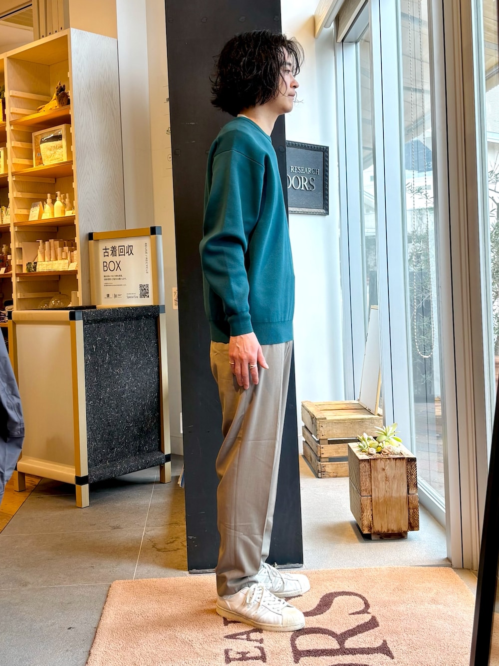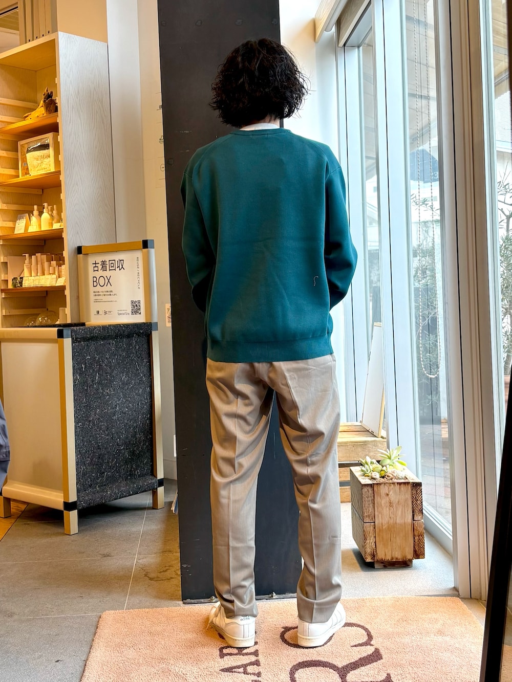 ありそうでないトップスとパンツは絶妙なカラーです。