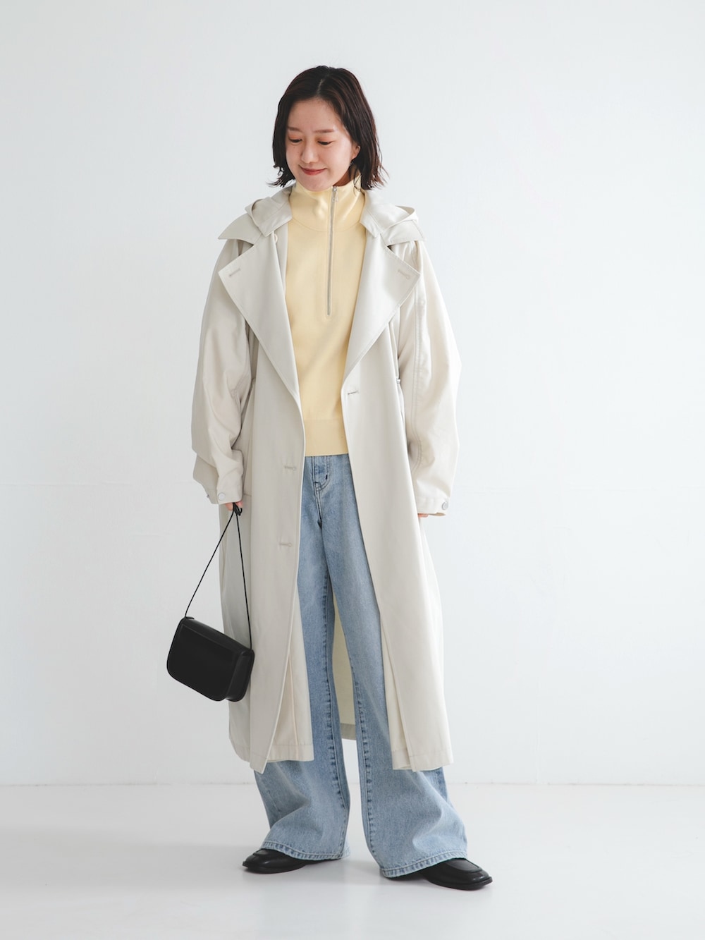 上品な軽さと端正なシルエットが魅力の、フード付き2WAYトレンチコートです!