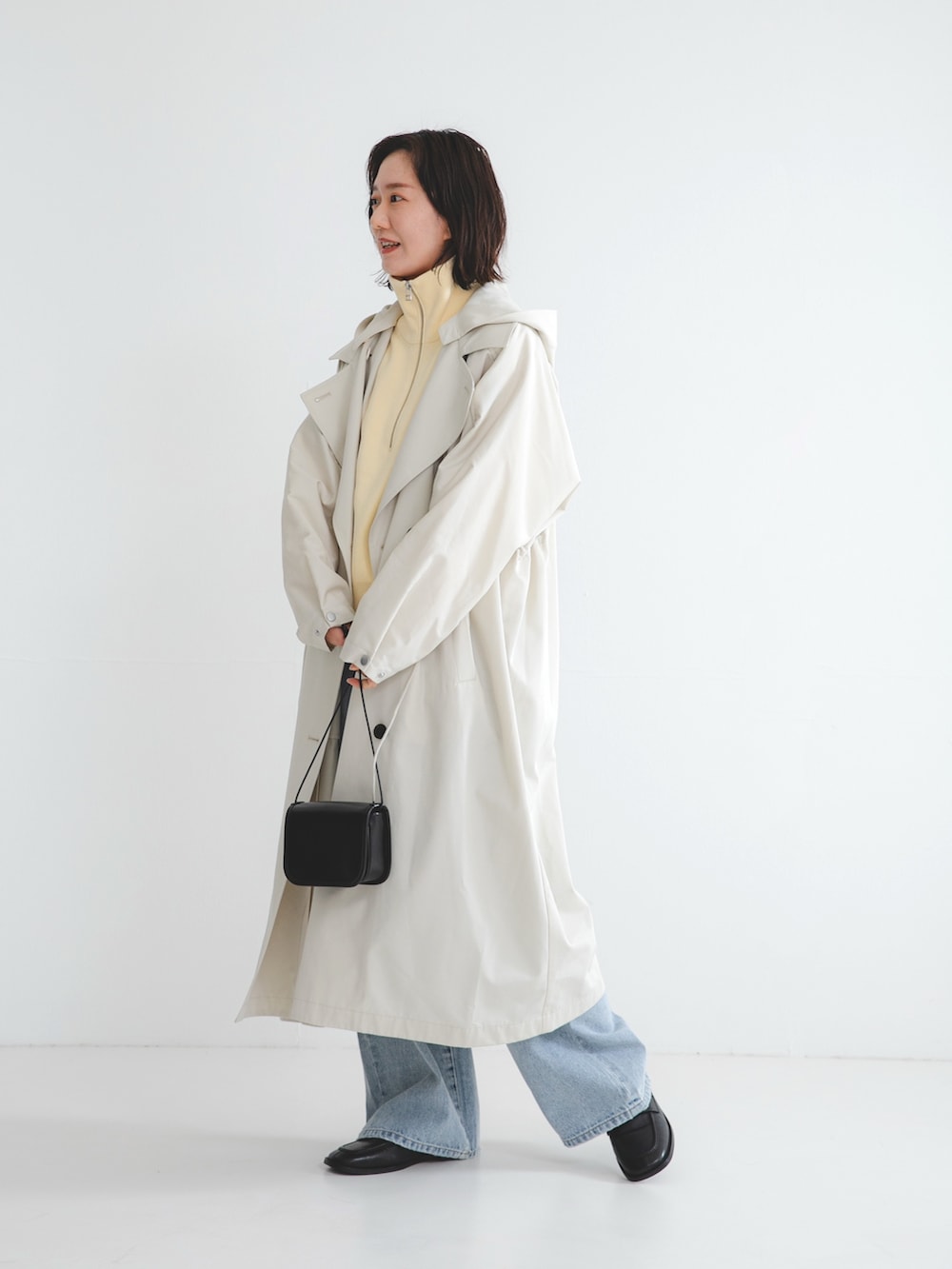 クラシックなトレンチの雰囲気を保ちつつ、重さを感じさせない軽やかな着心地が魅力です!