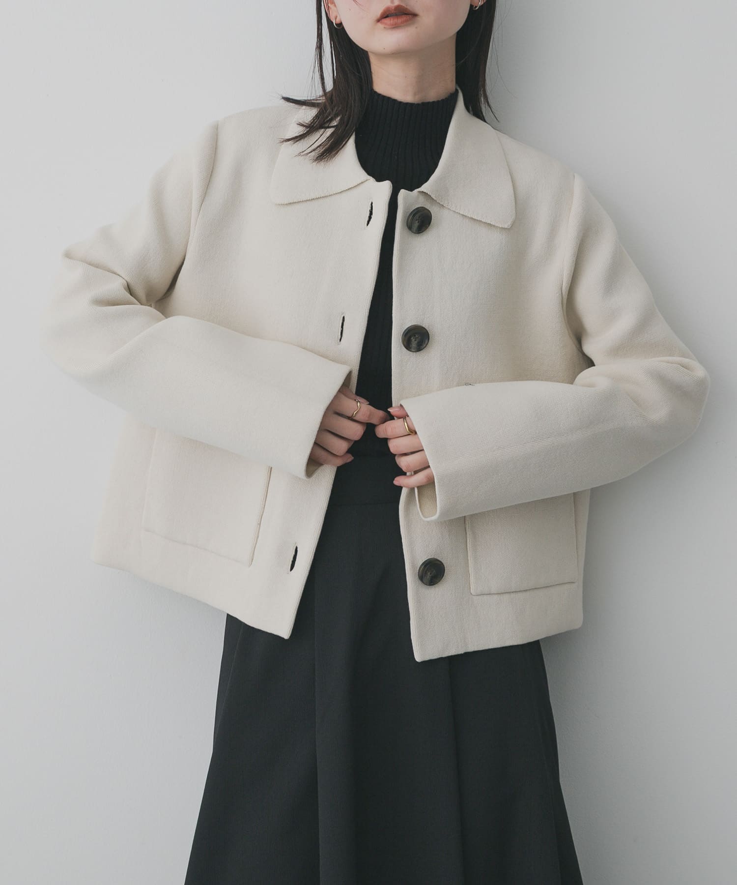 SENSE OF PLACE『洗濯可』ビックボタンニットジャケット- カラー: